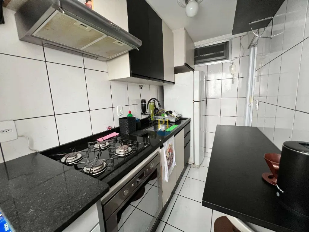 A cozinha é separada, equipada com armários planejados e bancada em granito, além de lavanderia independente, um diferencial que traz mais funcionalidade ao dia a dia.