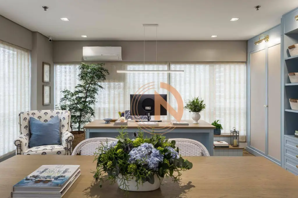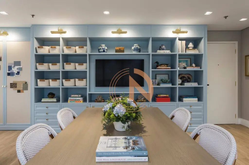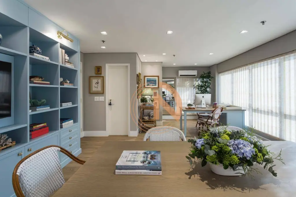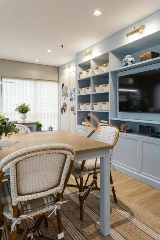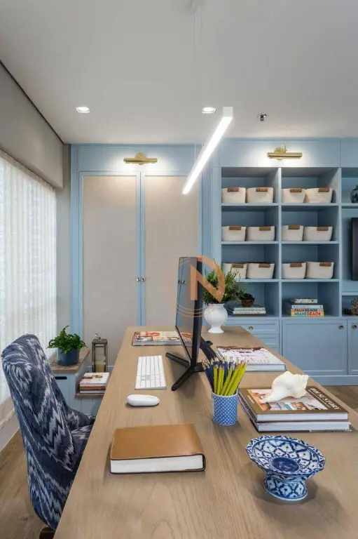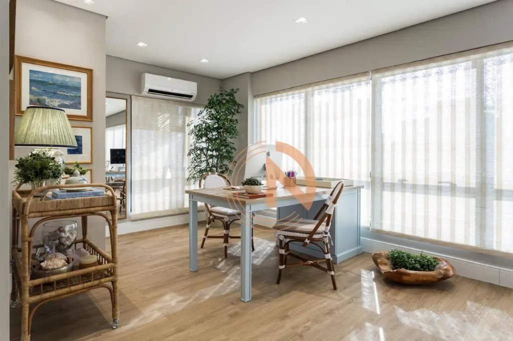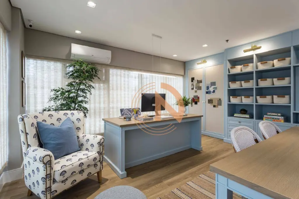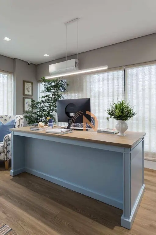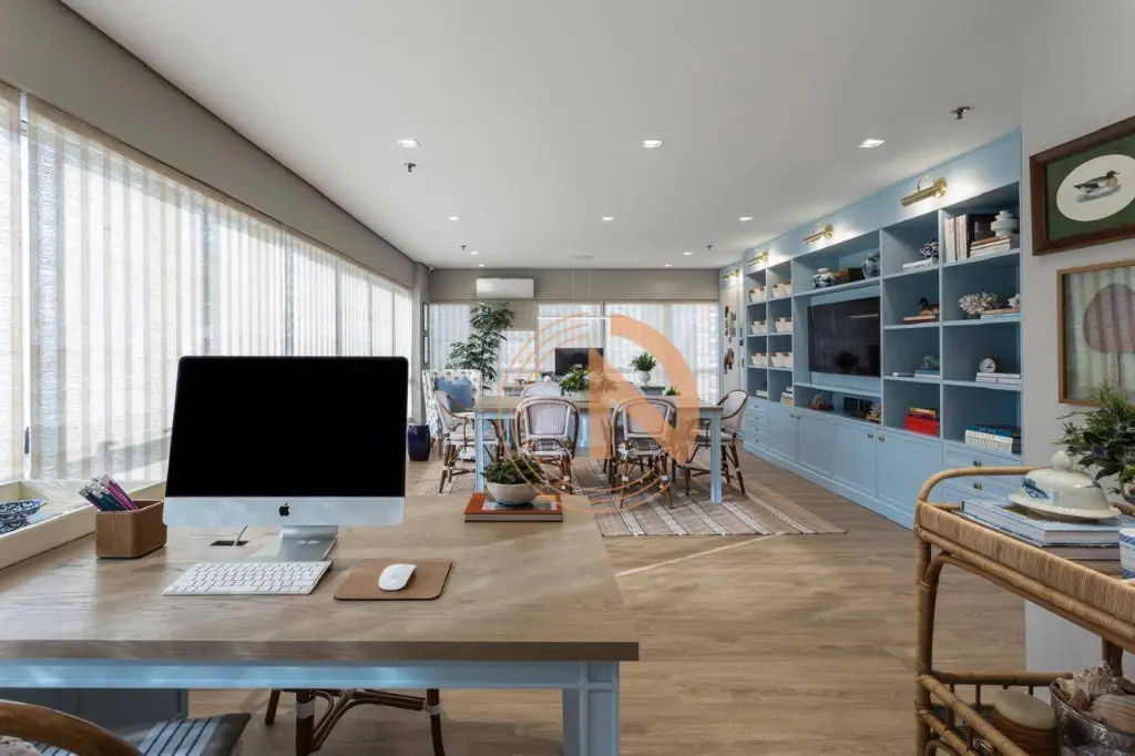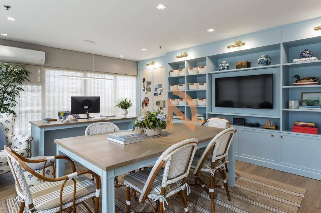 Sala pronta totalmente mobiliada e decorada com mobília de primeira linha e acabamentos de alto padrão. Projeto assinado por profissional renomada.
