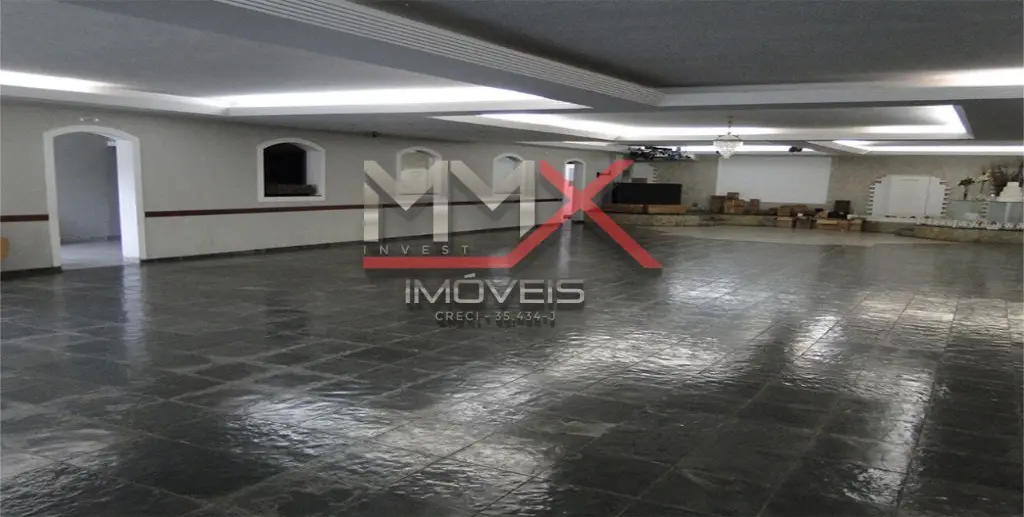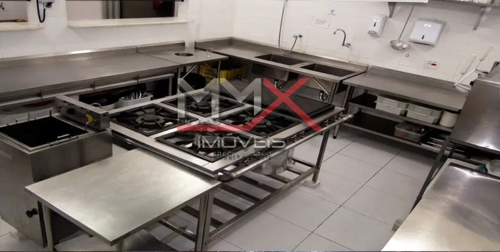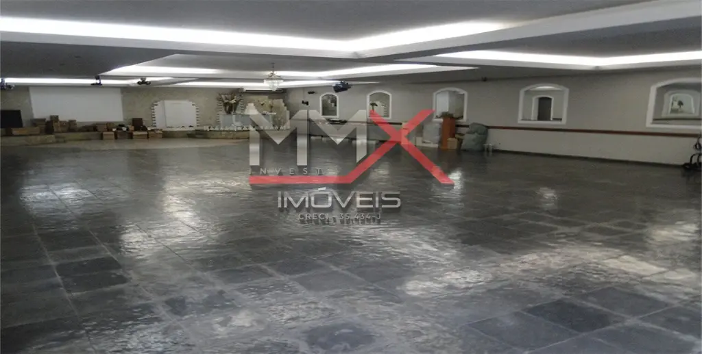 Garagem, jardim, hall de entrada, salão vão livre 300 m2, banheiros feminino e masculino, vestiários feminino e masculino com banheiro e banho, 2 amplas cozinhas, área de serviço
