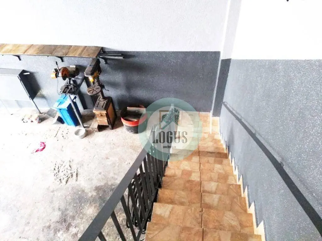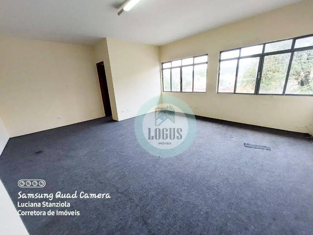 No prédio há 2 salões com mezanino (100m² cada), 3 salas comerciais (40m² cada), 1 casa e 14 vagas de garagem.