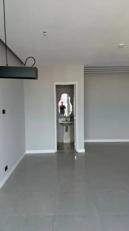 Sala impecável e ampla, com aproximadamente 36m2, com sacada vista livre, andar alto, banheiro privativo e 01 vaga de garagem.