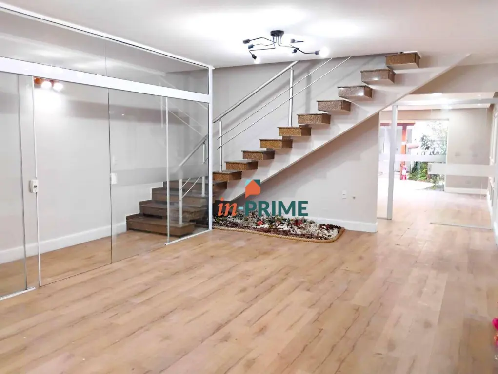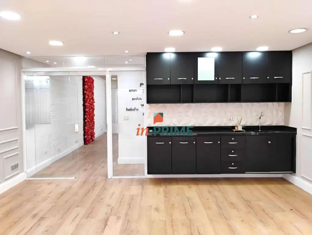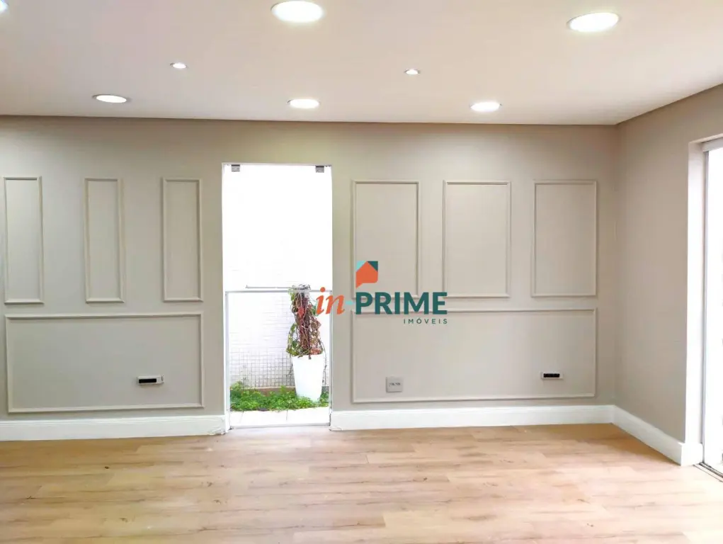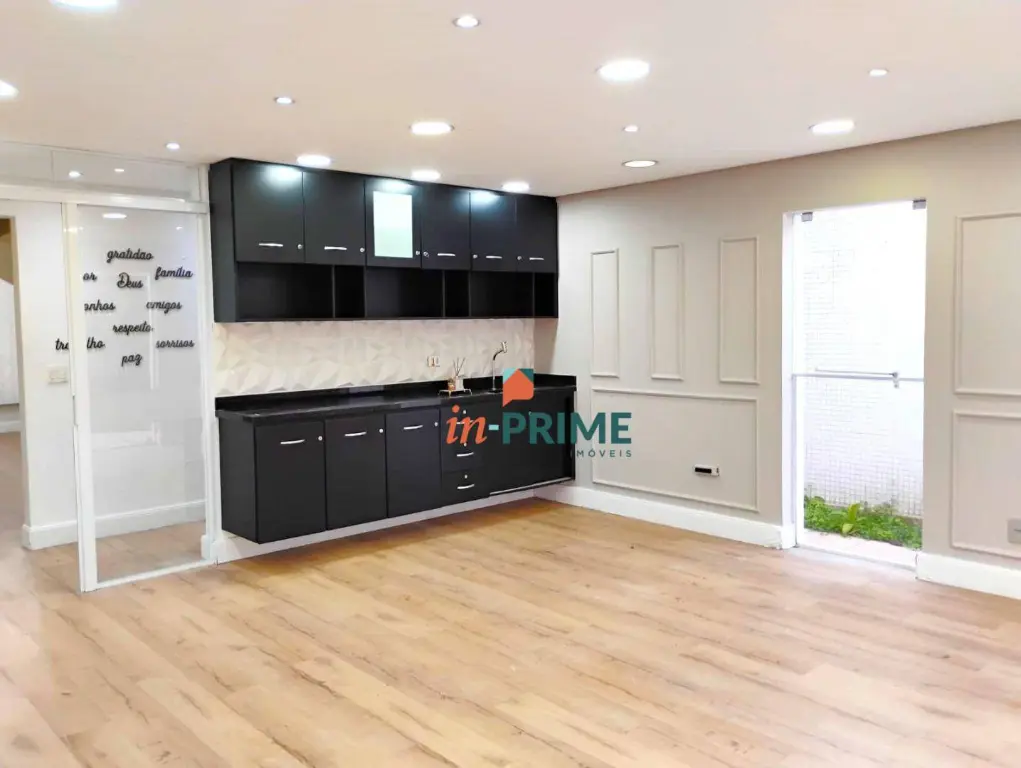 Sobrado comercial recém-reformado no Jardim Anália Franco, com duas salas conjugadas em um único ambiente que oferece versatilidade e sofisticação. O espaço conta com pontos de água, pia com bancada, tomadas 110 e 220V, armários planejados, teto em gesso com luminárias embutidas, piso laminado de alta qualidade e revestimentos de padrão elevado. A ampla janela proporciona excelente ventilação e iluminação natural, com vista para o jardim e para a fachada frontal do imóvel.