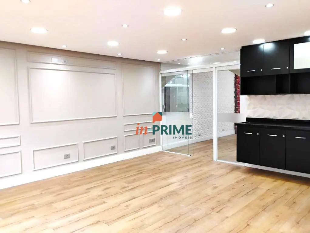 O ambiente é generoso e permite diversas configurações de layout para atender diferentes necessidades profissionais, além de contar com lavabo interno integrado à sala.
