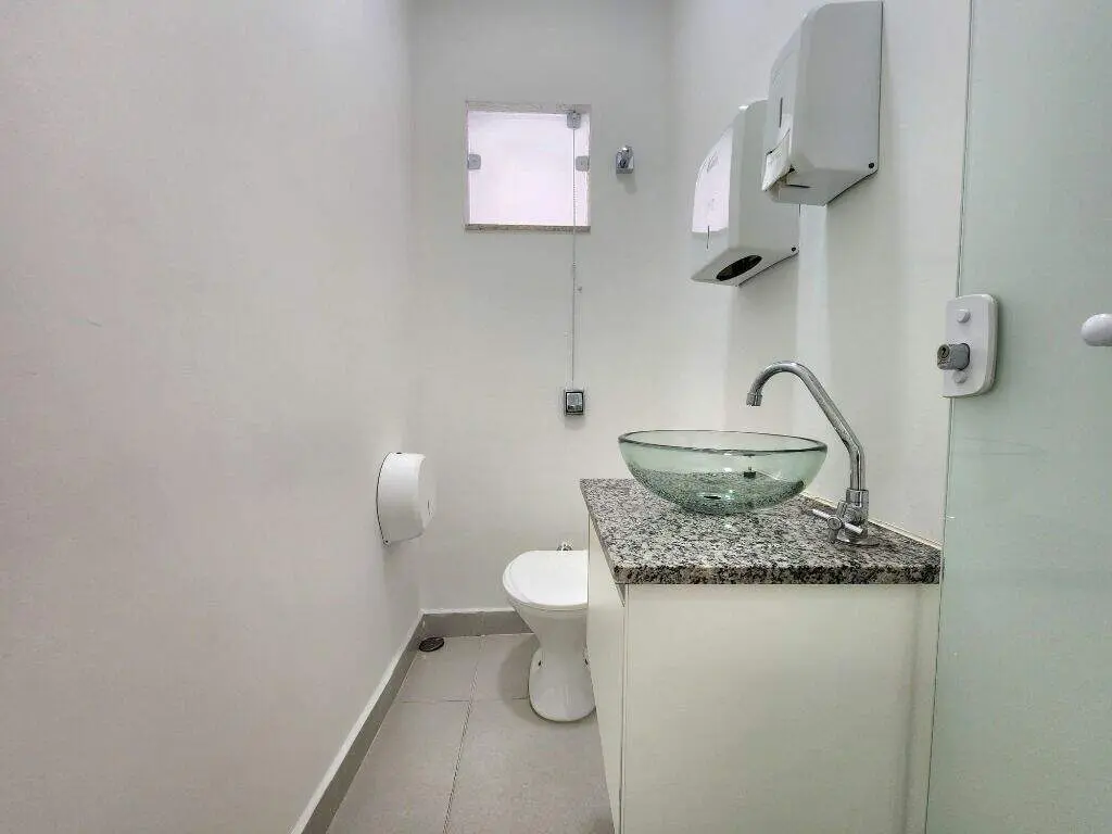 Conjunto comercial localizado Santo André/SP.Metragem:- 126 m² sendo 80 m² de área construída coberta;O imóvel é subdividido com os seguintes ambientes:- Sala de espera / Recepção;- 02 Salas de atendimento / Reunião;- Copa;- 02 WCs;- Quintal;- Jardim de inverno;- 01 vaga.Detalhes do imóvel:- 03 ares condicionados;- Pias de granito preto com gaveteiros e mdf a prova d'água;- Ótima iluminação;- Pontos de antena (cabo óptico / coaxial);- Pontos de câmera (vigilância / DVR);- Energia dimensionada em todos os ambientes;- Iluminação apropriada conforme regulamento técnico;- Pisos em porcelanato bold 60x60cm;- Pintura em tom neutro com tinta acrílica fosca lavável;- Facelift dos banheiros com novas louças e metais sanitários;- Avaliação e correção do telhado;- Limpeza de rufos e ralos;- Calhas de alumínio;- Fechamentos (portas e janelas) em vidros incolores para garantir maior iluminação natural.