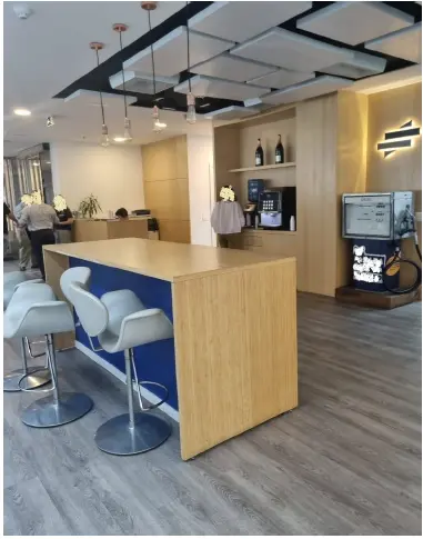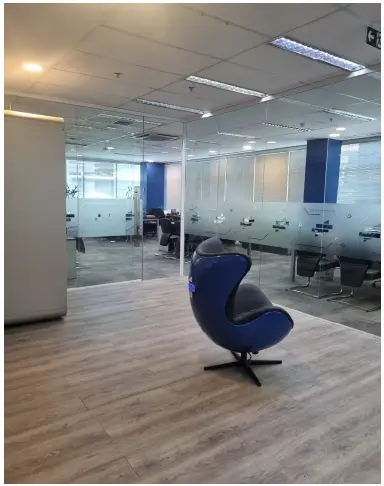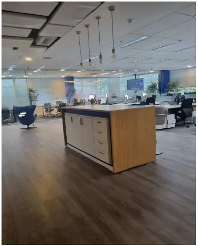 Conjunto com piso, forro, divisórias e luminárias, pronto para uso.