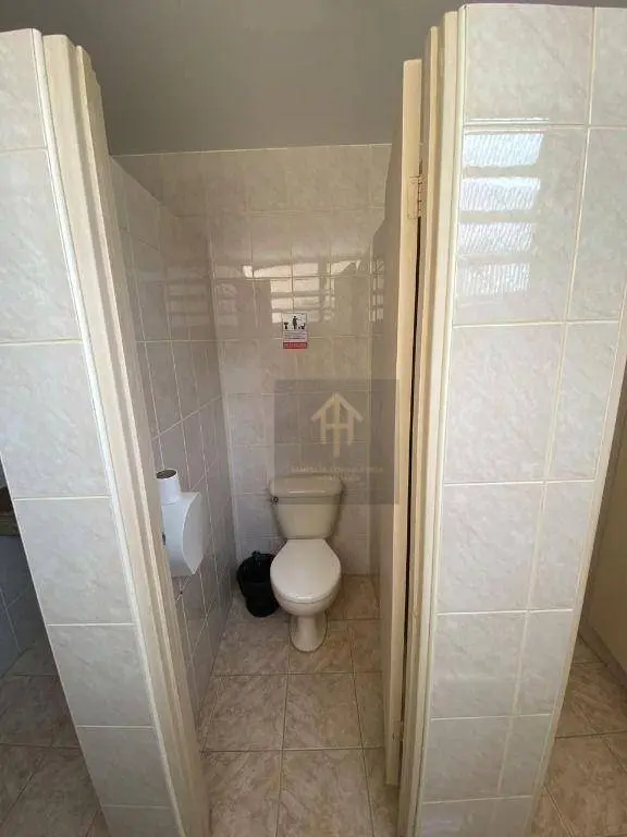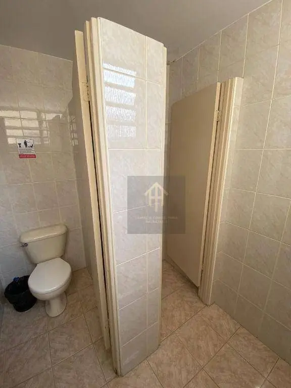 O banheiro feminino e masculino é compartilhado e fica localizado fora da sala, no corredor.