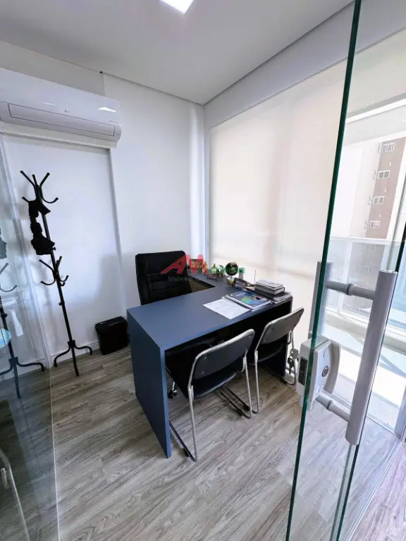 Esta sala comercial de **35 m²** está situada em **andar alto**, oferecendo excelente iluminação natural e uma **varanda privativa**, ideal para um ambiente de trabalho moderno e agradável. Conta com **um banheiro** e **uma vaga de garagem** com serviço de manobrista, garantindo praticidade no dia a dia.