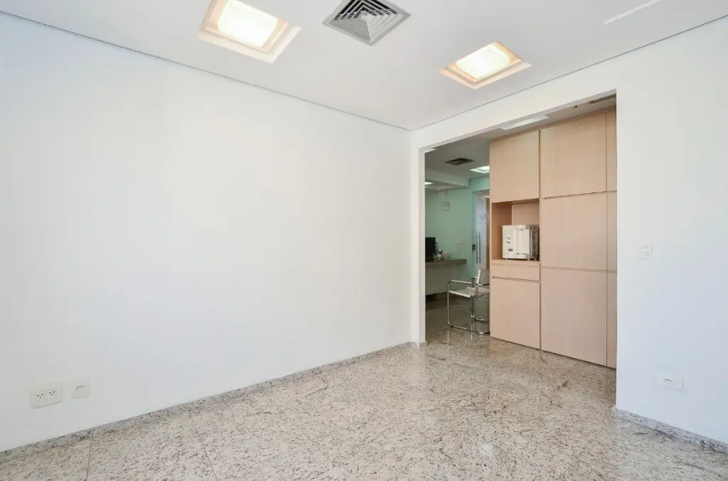 Sala comercial à venda e locação no Edifício Santa Paula, localizado na Rua Alvorada, 64, na Vila Olímpia. O valor da locação é de R$2.300,00 com 2 vagas de garagem.