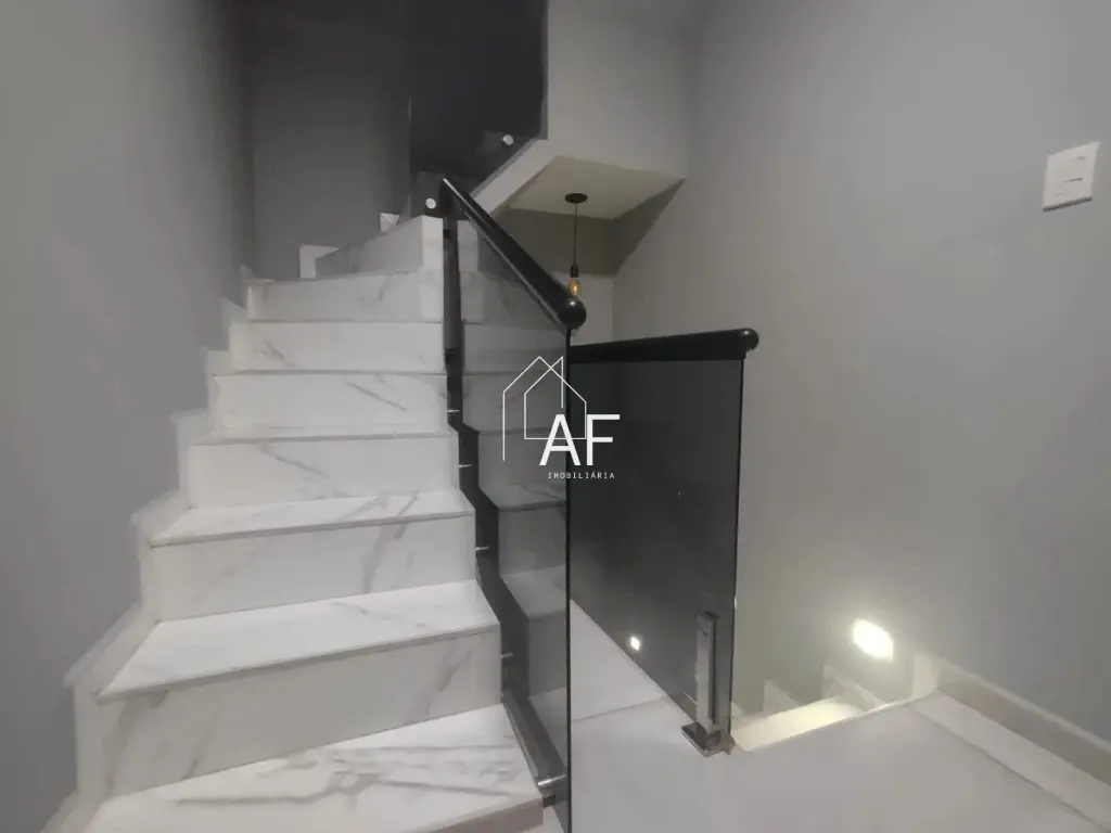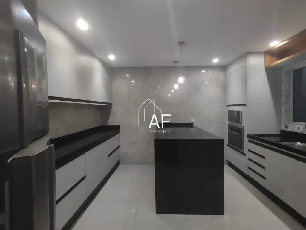 São 4 dormitórios (2 suítes), 3 banheiros, 2 lavabos, além de espaçosa sala de estar, cozinha moderna, escritório e área de lazer completa com churrasqueira, piscina aquecida e mesa de sinuca.