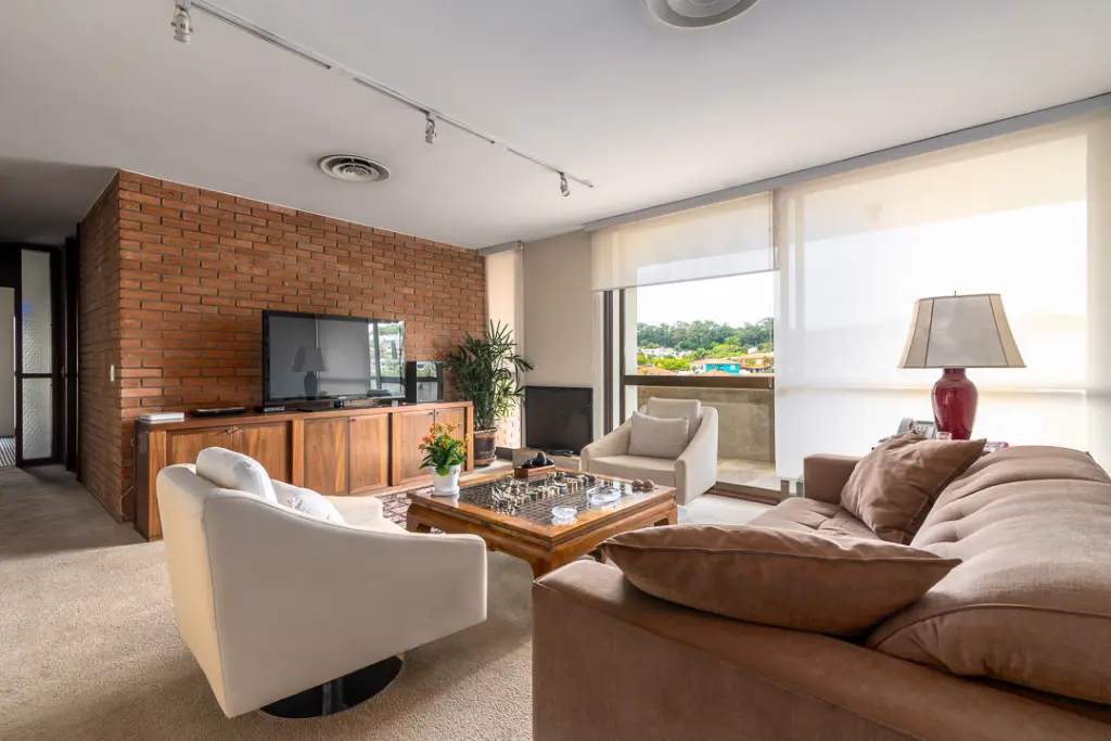 A área social é composta por living amplo com dois ambientes, jardim lateral, varanda voltada para vista do Bairro, sala de lareira ampla, sala de jantar individualizada, copa individualizada e cozinha ampla com muita luz natural e lavabo. 6 banheiros total.