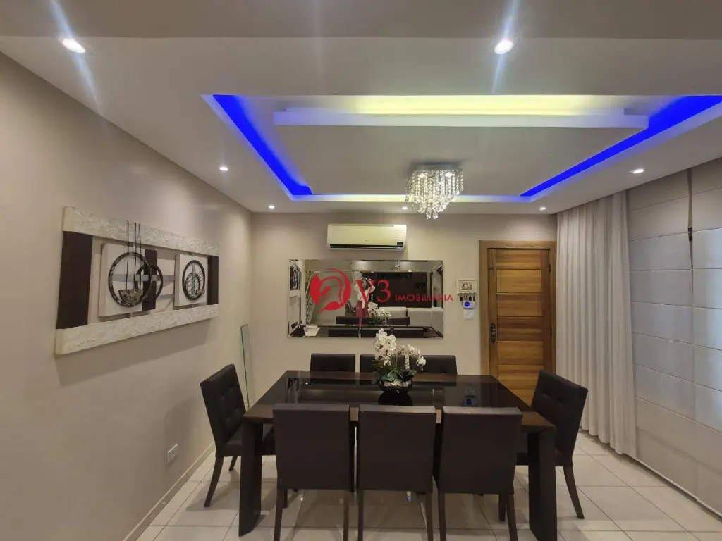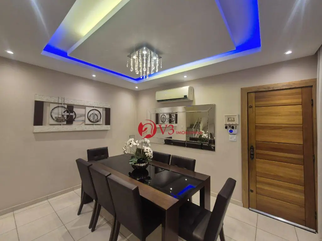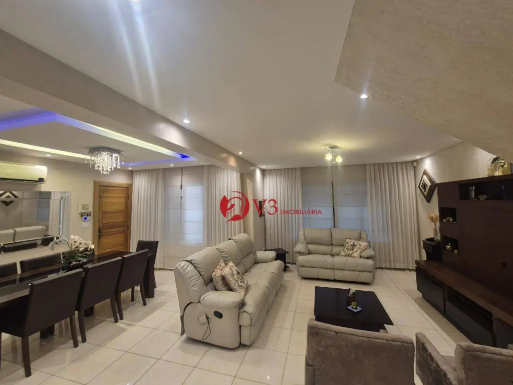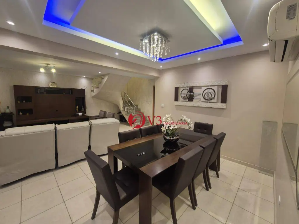 Sobrado elegante e totalmente mobiliado, com 3 dormitórios, sendo 1 suíte master com varanda, hidromassagem, sauna e aquecimento a gás. Dormitórios amplos, todos com planejados de alto padrão, sendo a suíte e o segundo dormitório com varanda. Ambientes climatizados com ar-condicionado quente e frio nos dormitórios e na sala.