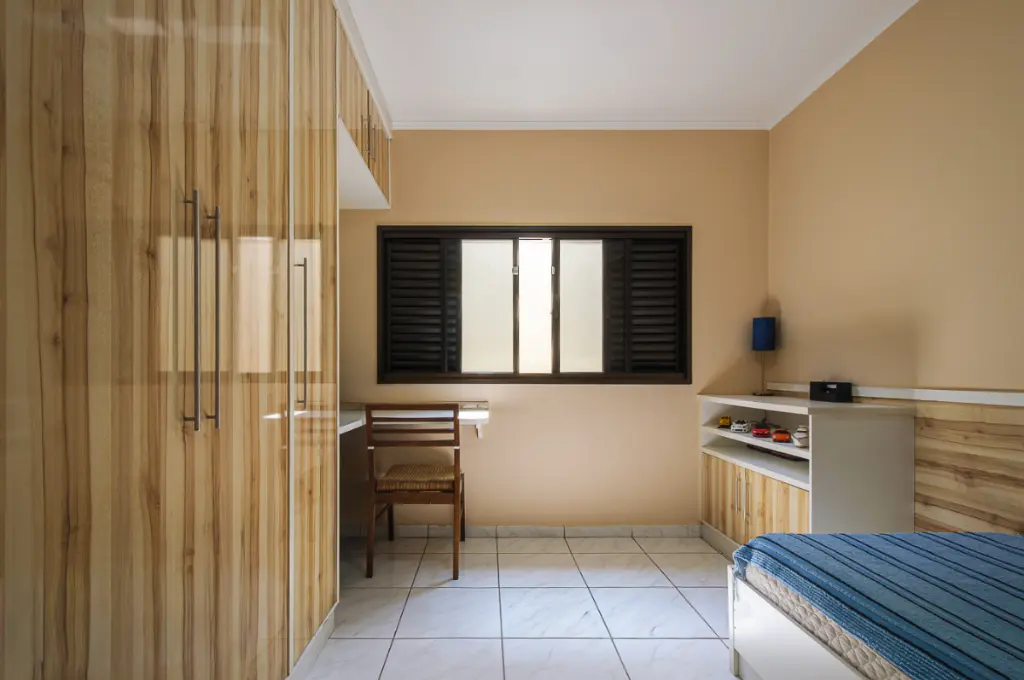 No piso superior, o imóvel dispõe de três dormitórios, sendo uma suíte bem distribuída e aconchegante, varanda e ar-condicionado. Os dormitórios contam com armários planejados e um deles ar-condicionado. Todos os quartos possuem pisos frios, que garantem fácil manutenção, durabilidade e maior sensação de frescor. Temos neste andar mais um banheiro garantindo comodidade aos demais moradores.
