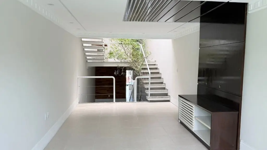 Um dos grandes destaques é o charme do jardim de inverno com teto retrátil e bambu mossô natural de 4 metros, trazendo elegância e iluminação natural ao ambiente. O imóvel ainda dispõe de lareira, perfeita para momentos aconchegantes.