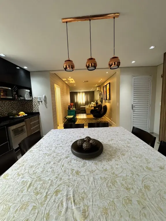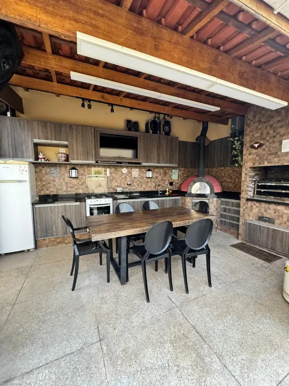 Área de lazer completa com cozinha gourmet, churrasqueira, forno de pizza e uma piscina convidativa, perfeita para momentos de descontração;