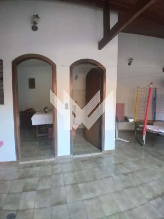 Garagem coberta para 5 carros pequenos, que também pode ser usada como salão de festas.