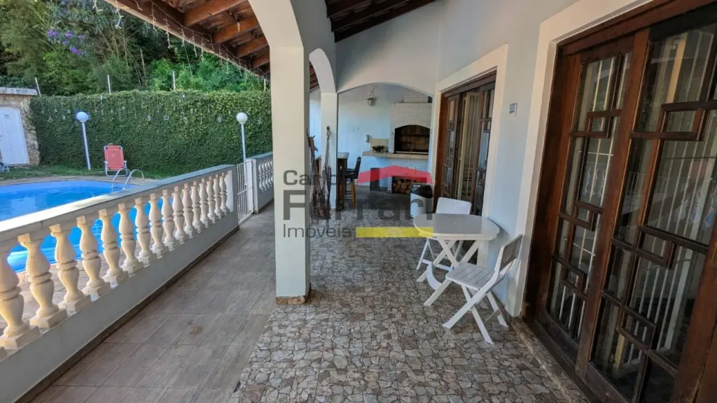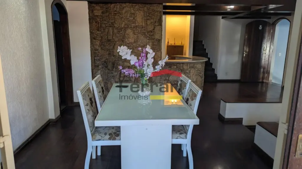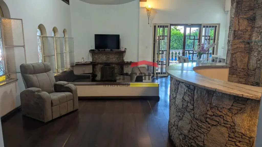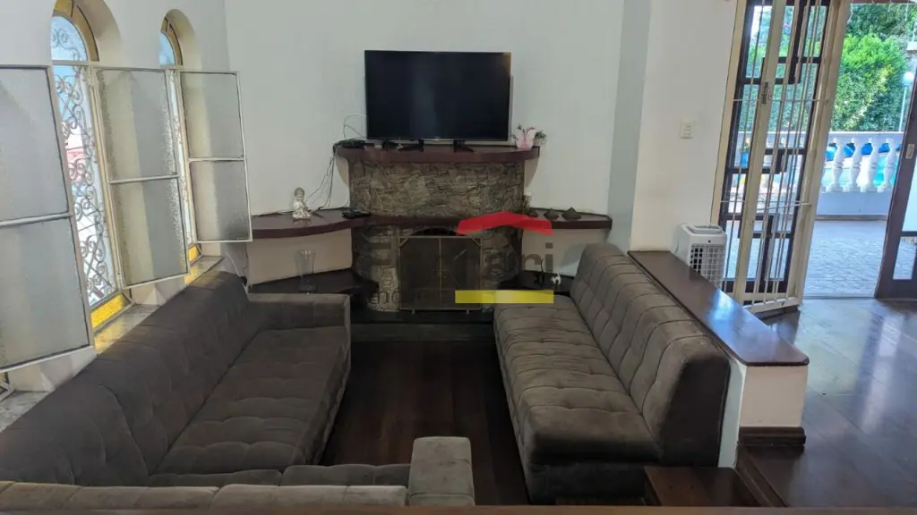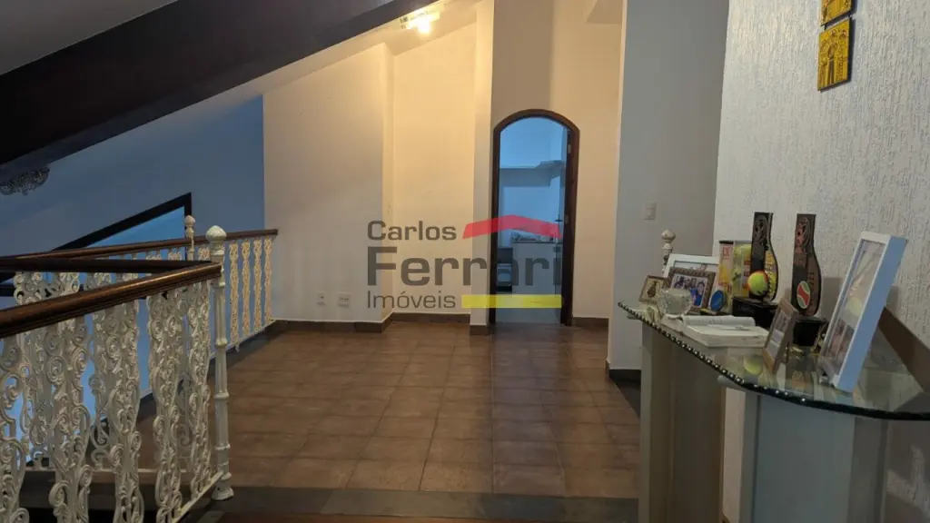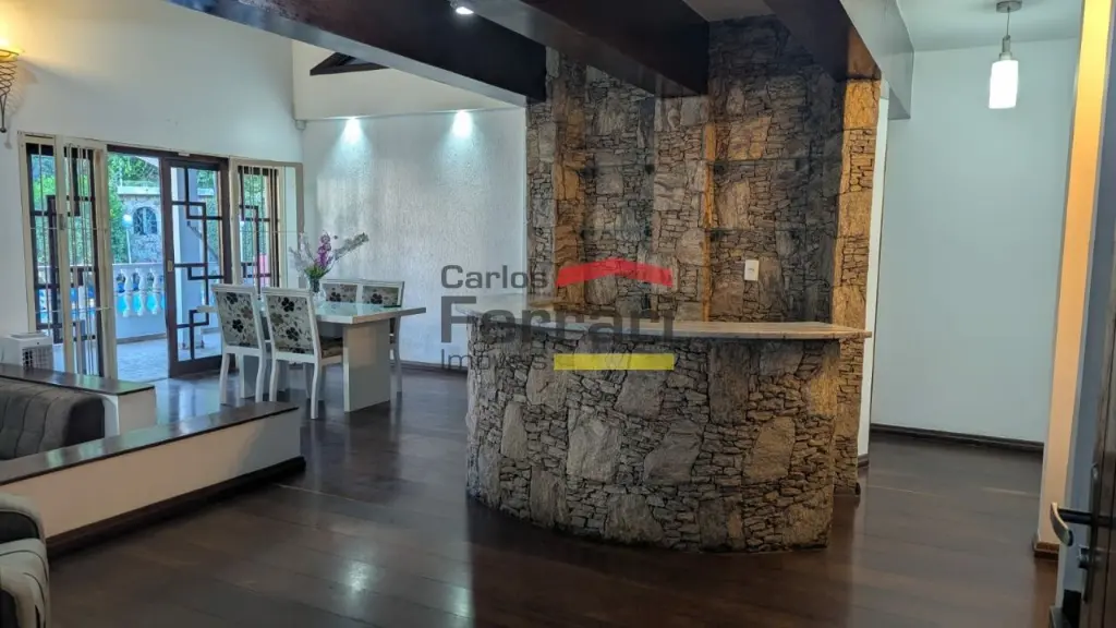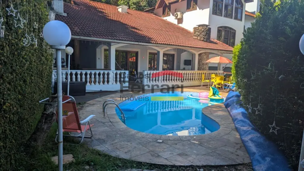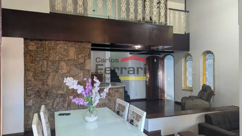 Sobrado espaçoso com 04 dormitórios sendo 03 suítes, uma com hidromassagem, lavabo, lareira, sala 03 ambientes, armários planejados na cozinha e dormitórios. Piscina, quintal, churrasqueira.