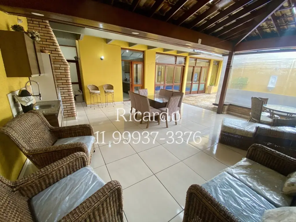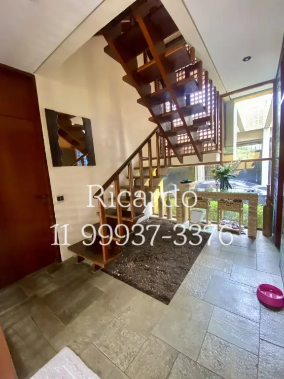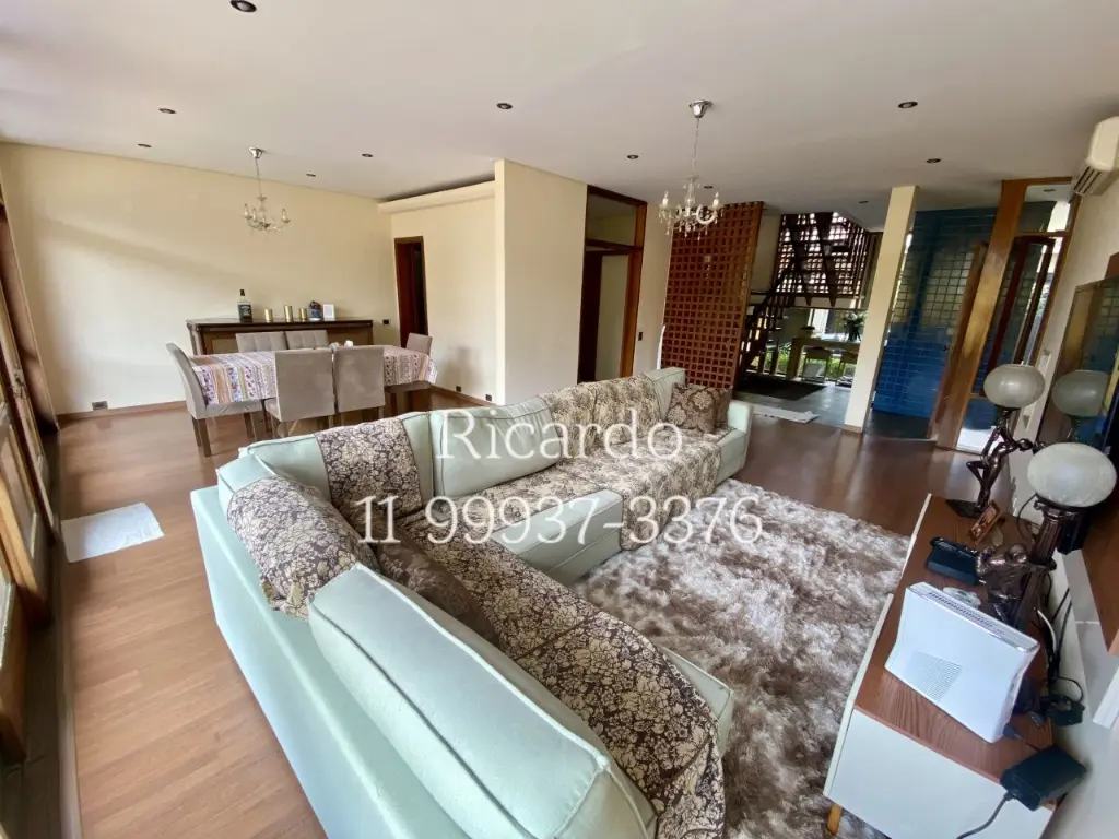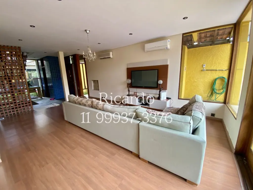 A casa possui 3 vagas de garagem, ar condicionado, área de serviço e dependência de empregados. A cozinha é independente e equipada com lava-louça. Para os amantes da culinária, há um espaço gourmet. O imóvel também oferece closet, despensa, escritório, hidromassagem, jardim, lareira, lavanderia e mezanino.