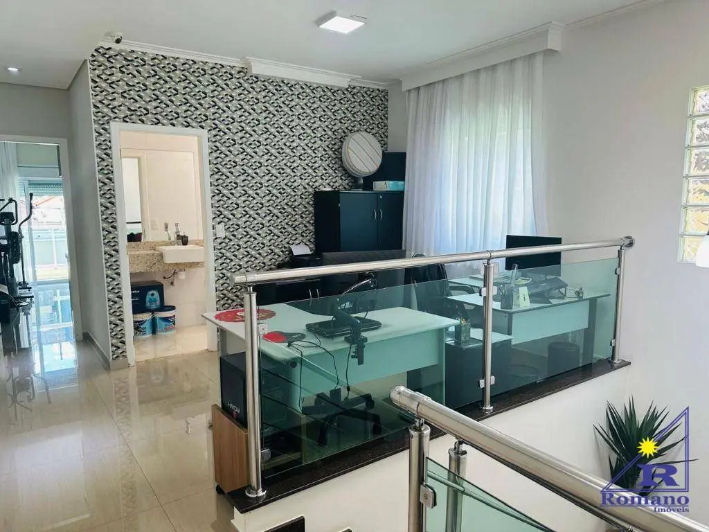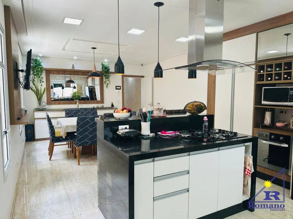 Casa de 236m² de área construída, com aproximadamente 7 anos de construção e bem conservada, com piscina grande no fundo, churrasqueira, água de reuso com captação de chuva, infraestrutura pronta para energia solar, 4 dormitórios amplos, todos suítes, sendo 1 deles adaptado para escritório, mas facilmente reversível, sala grande, cozinha totalmente planejada e garagem para 5 carros.