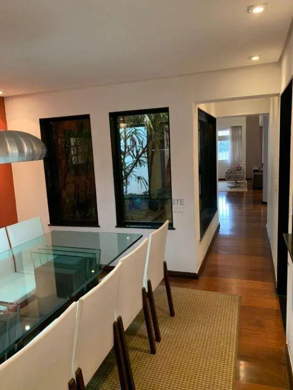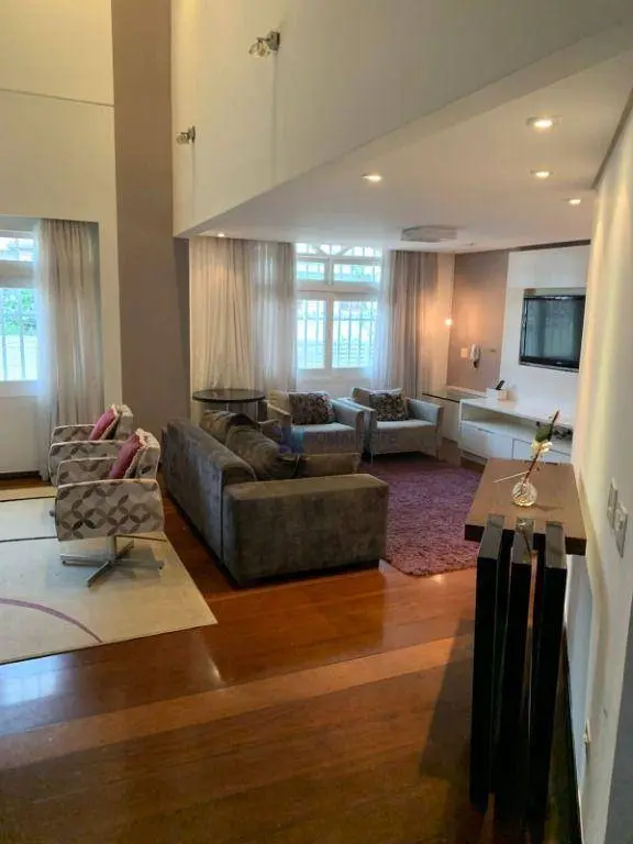 Excelente sobrado, amplo e bem distribuído, com 4 dormitórios, sendo 3 suítes, sala para dois ambientes com ar-condicionado, cozinha ampla, sala de jantar, lavabo, quarto de empregada, lavanderia e área de serviço.