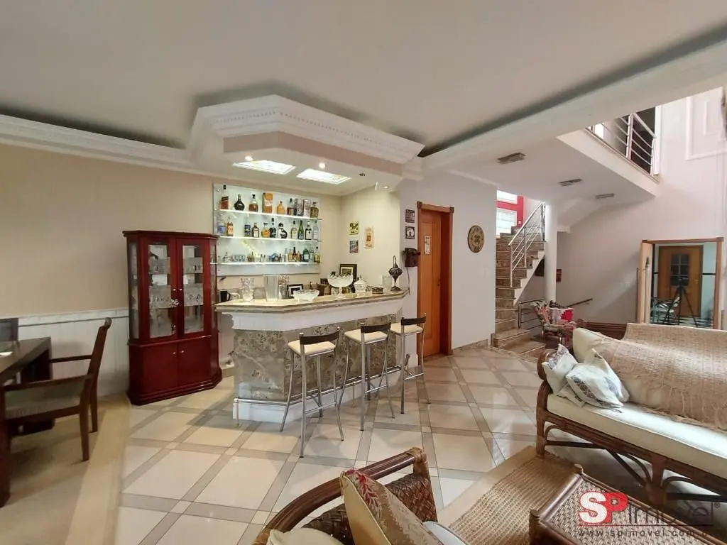 Belíssimo sobrado de alto padrão com 3 suítes, sala com 3 ambientes e lareira, cozinha ampla, total de 7 banheiros no total, escritório.