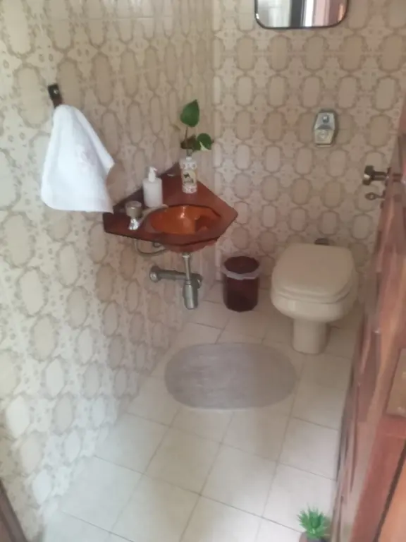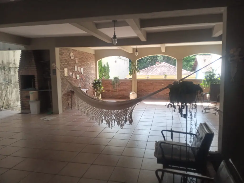 Casa de 3 dormitórios, sendo uma suíte, banheiro social com banheira, lavabo, sala de estar, sala de jantar, cozinha, e lavanderia, na parte inferior, uma sala íntima, amplo salão com banheiro e churrasqueira, quintal e dependência de serviços, garagem para 4 a 6 automóveis