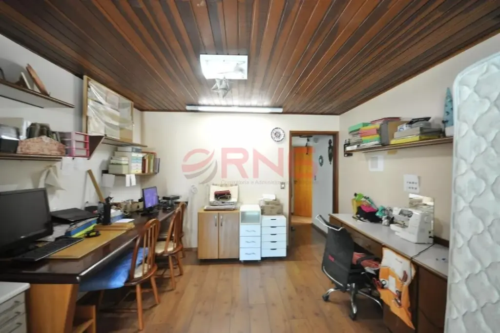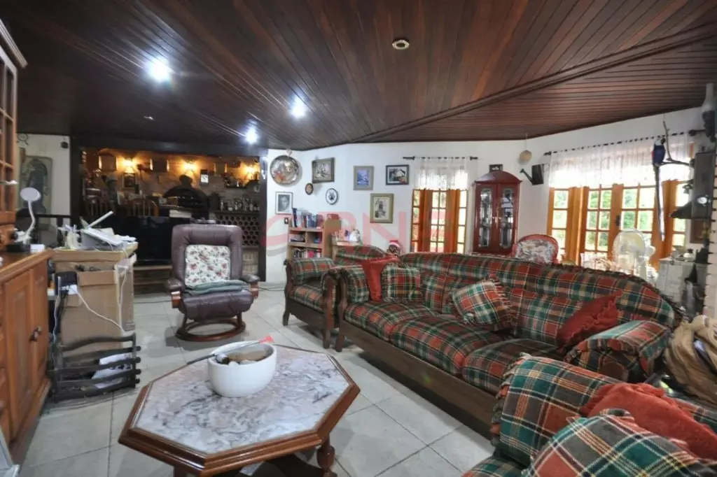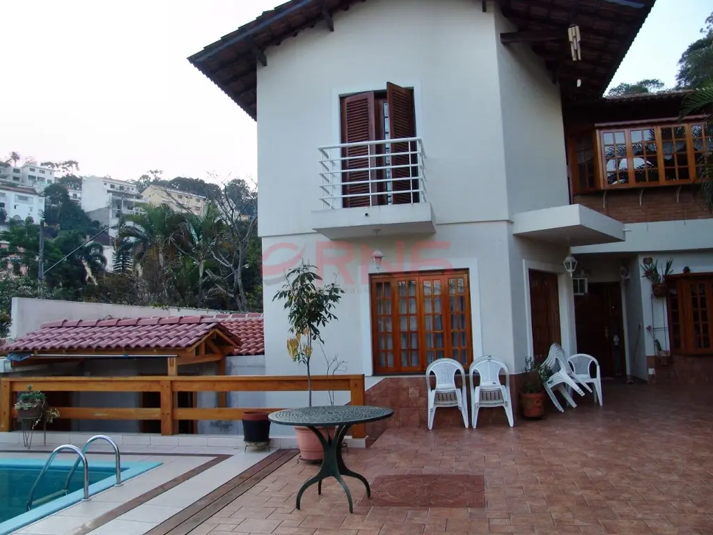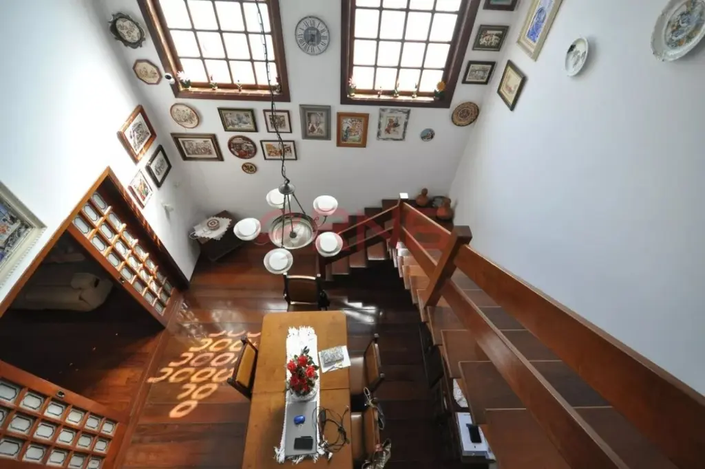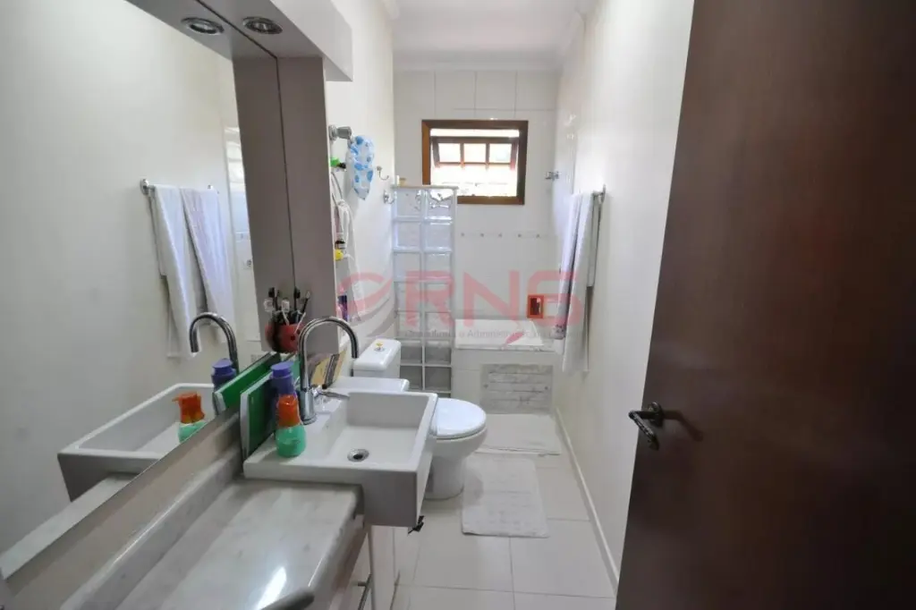Sobrado bem arejado, sendo a frente com muro todo coberto com verde e calçada de 3 metros e com um limoeiro, possui entrada social, piscina com chuveiro externo, área gourmet ampla com churrasqueira coberta, bancada em granito de 3 metros com 2 cubas, banheiro, quintal grande com jaboticabeira, goiabeira e alecrim, sala de estar com 2 paredes com tijolinho à vista, adega e 2 janelas de madeira bay window, lavabo com pia de granito, sala de jantar com pé-direito duplo, sala de TV ampla com 2 janelas com vista para a piscina, lareira, cozinha com planejados até o teto e em toda a volta, espaço para fogão de 5 bocas, espaço para lava louças e para freezer, bancada longa em granito, área de serviço coberta, com quarto e banheiro de serviço, área seca e molhada, com armários planejados de chão a teto, com acesso pela sala de estar, cozinha e também pelo corredor lateral que dá para a garagem, piso ardósia, piso frio na parte inferior da casa, escada em madeira, piso de madeira nobre, portas de correr de madeira na sala de estar e TV, 2 dormitórios grandes na frente com vista para rua, ambos suítes com janelas e porta balcão de alumínio branca, varanda e sendo 1 com banheira, 1 suíte master com avanço tipo varanda, janela bay window de 3 metros, banheiro com banheira para 2, box de vidro, bancada com 2 pias, 2 janelas de madeira, closet com planejados, 1 dormitório com planejados que pode ser usado como continuação do closet da suíte master, com janela de vidro, e atrás possui mais 1 suíte com closet que pode ser fechada se tornando uma suíte separada, aquecimento central com boiler, escada de piso frio que dá para a sala de estar, com o total de 7 banheiros e garagem coberta para 5 carros.