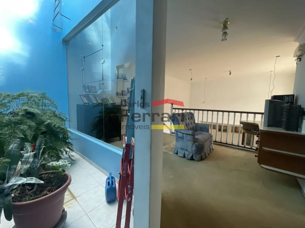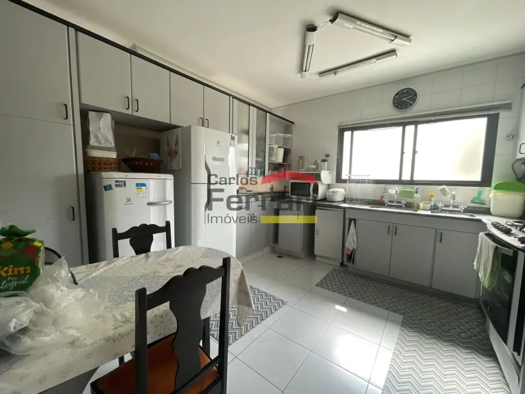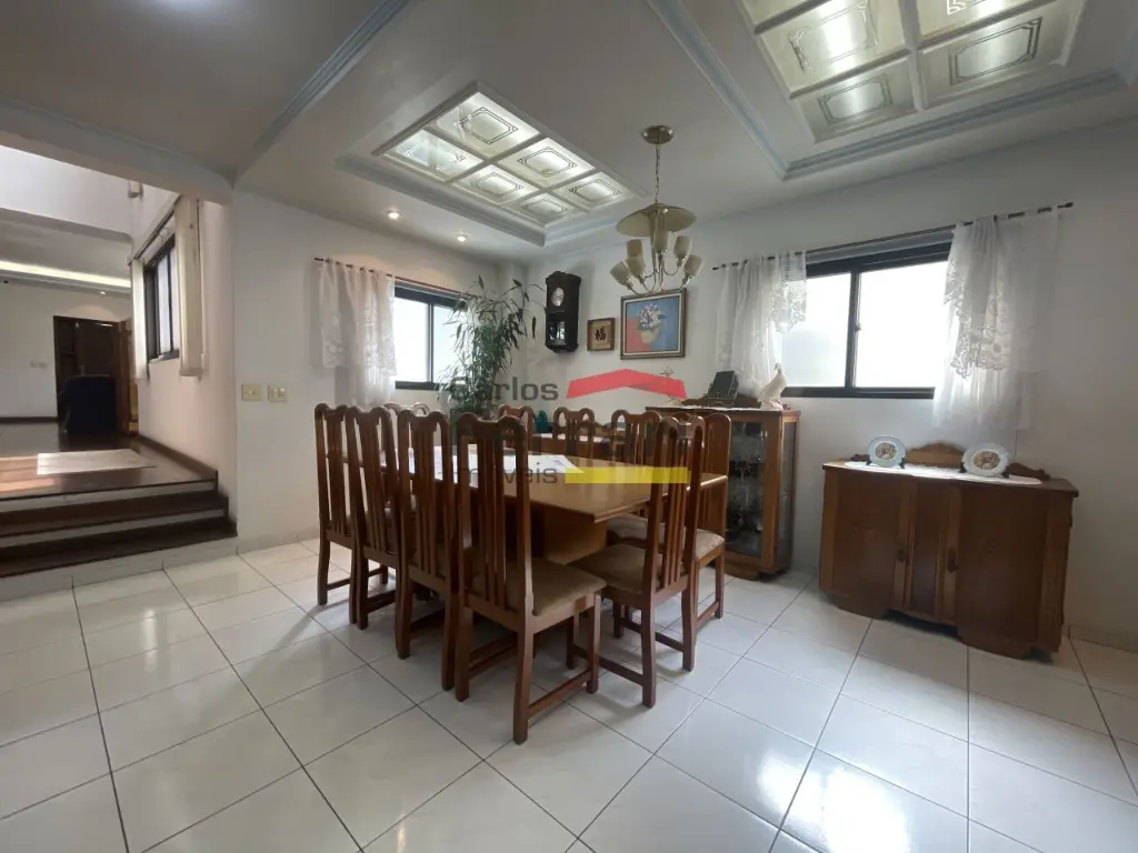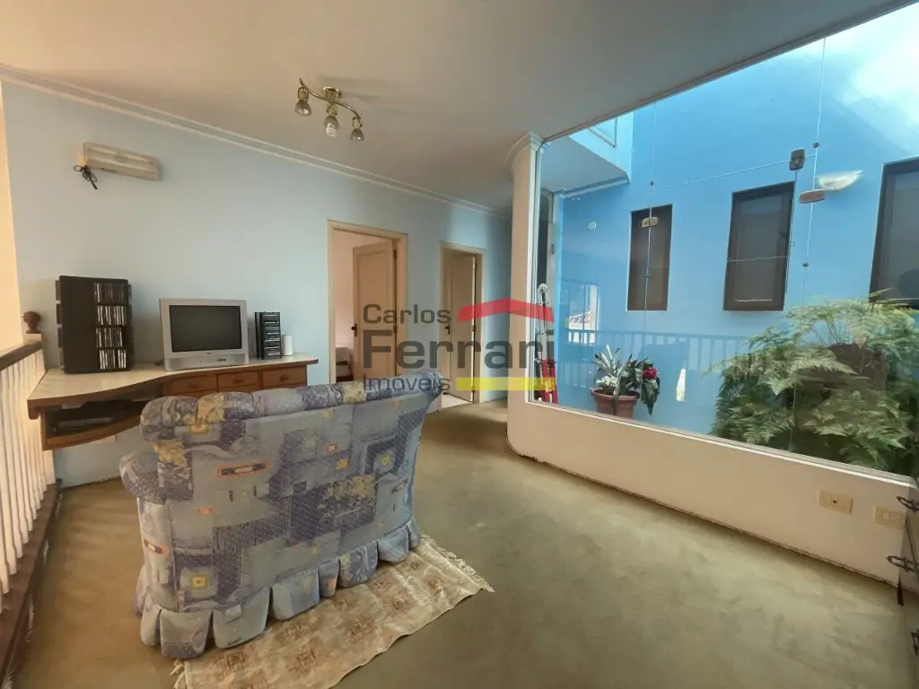 Piso superior sala íntima, jardim de inverno, duas suítes, sendo uma delas com closet, armários planejados, varanda, banheiro com banheira de hidromassagem, tudo carpete, mais dois dormitórios com armários, banheiro social. Primeiro sub solo garagem ampla para dez carros, dependência de empregados, cozinha, banheiro.