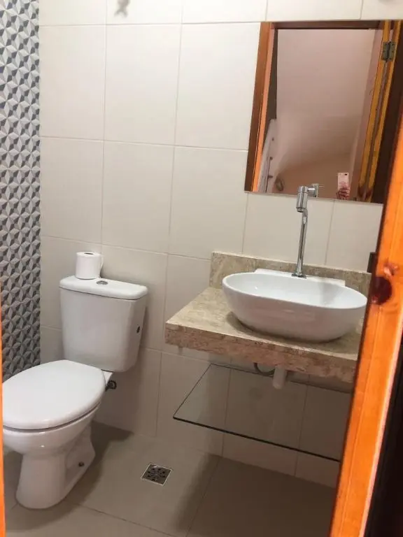 2 dormitórios, sala, cozinha, banheiro social, lavabo, área de serviço com cobertura e 2 vagas de garagem