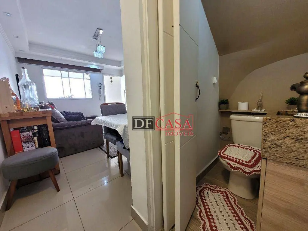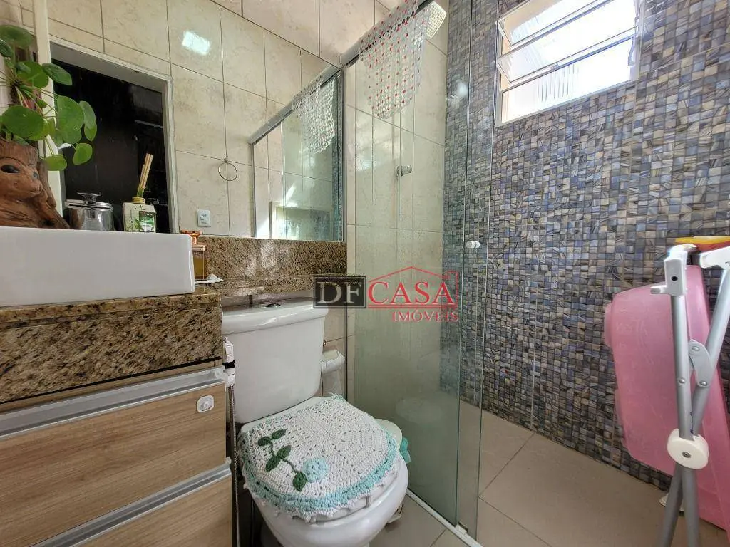 Sobrado composto por 75 m², sendo, 1 vaga de garagem coberta, sala para dois ambientes, lavabo, coxinha com armários planejados, lavanderia com teto retrátil, 1 suite com planejados, 1 banheiro para atender dois os dois dormitórios e mais 2 dormitórios estando 1 planejado.