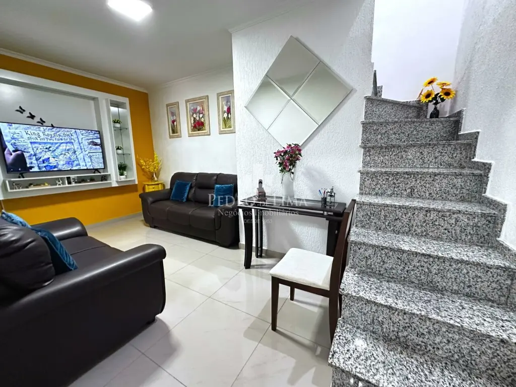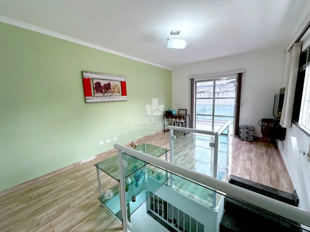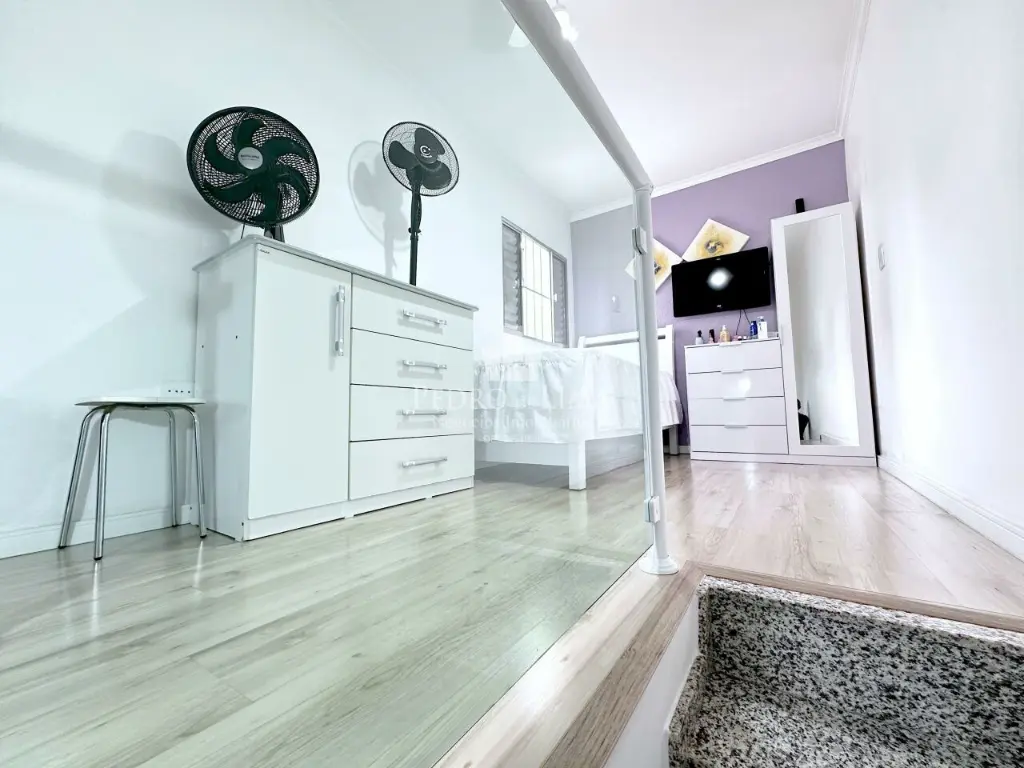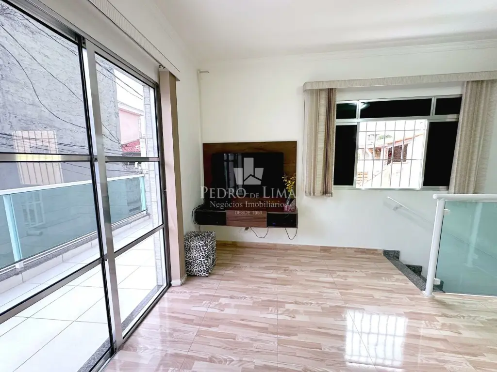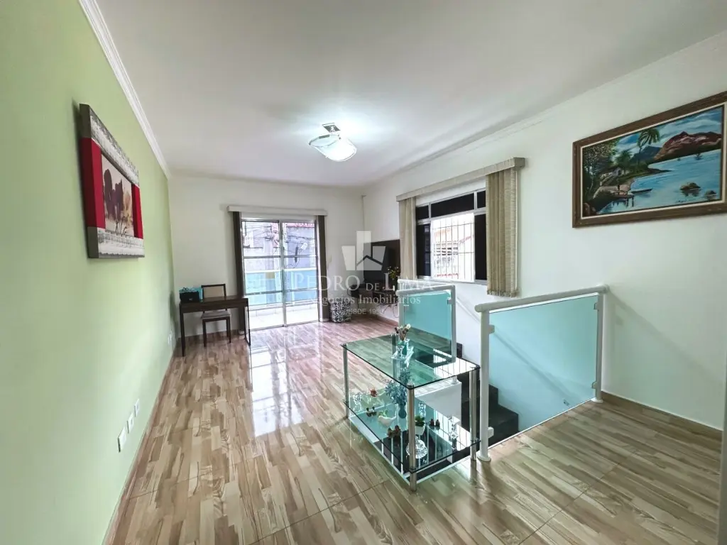 Pavimento superior: 2 dormitórios (1 suíte), sala enorme com acesso a ampla varanda.