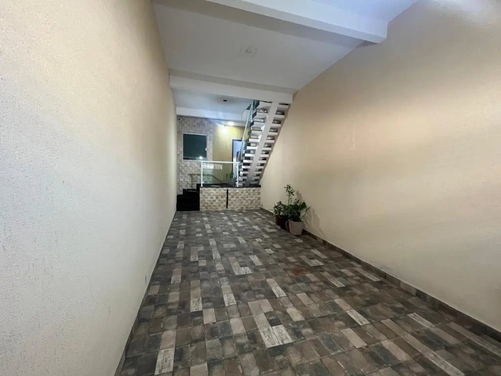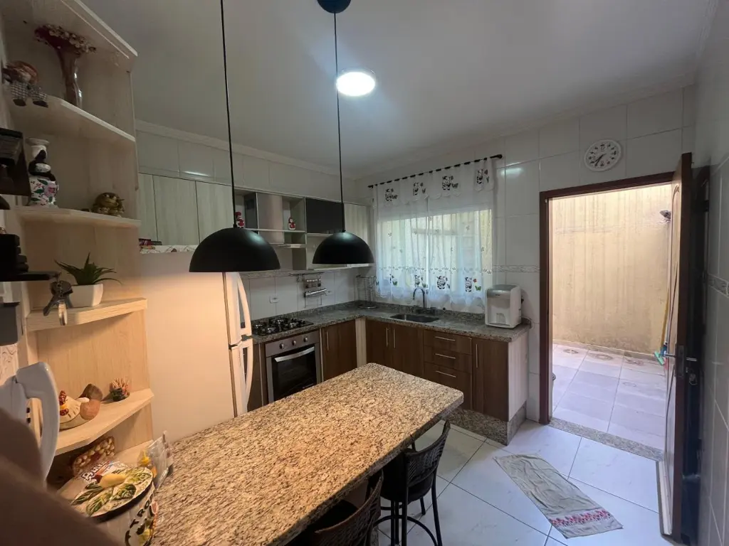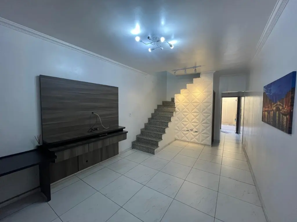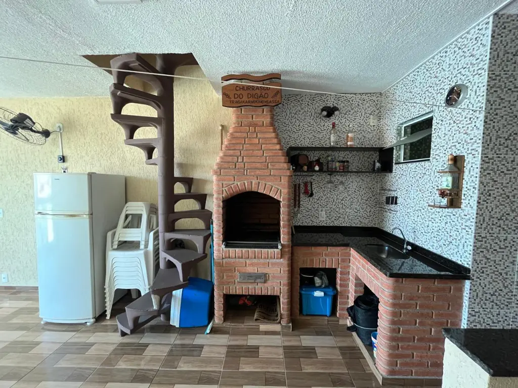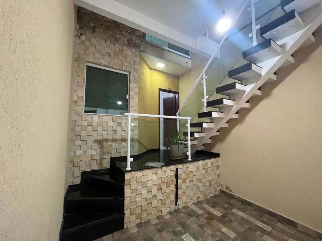 LINDO SOBRADO COM 03 PAVIMENTOS, SENDO 02 SUÍTES, AMBOS COM GUARDA ROUPA EMBUTIDO E AR CONDICIONADO, SALA AMPLA, COZINHA PLANEJADA, LAVANDERIA, 02 VAGAS DE GARAGEM COM PORTÃO AUTOMÁTICO, SISTEMA DE ALARME COM 09 CÂMERAS, CHURRASQUEIRA COMPLETA.