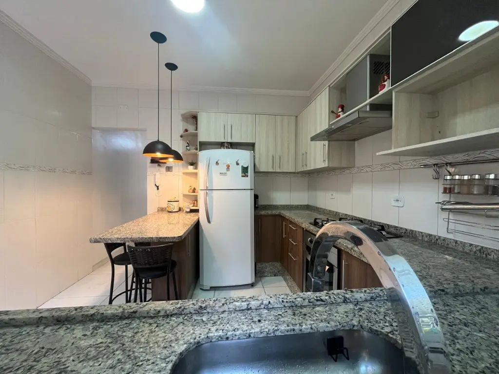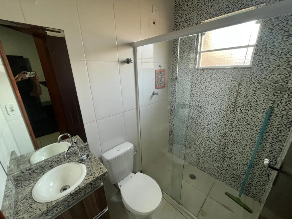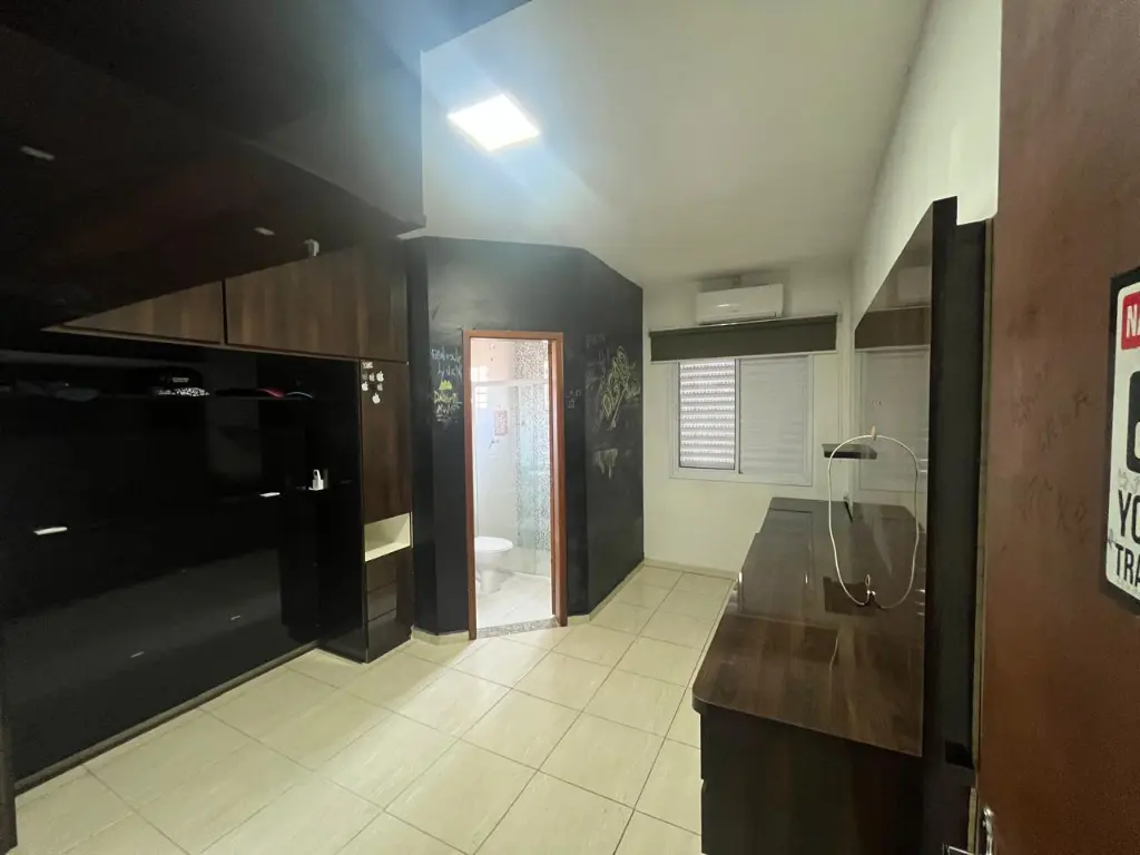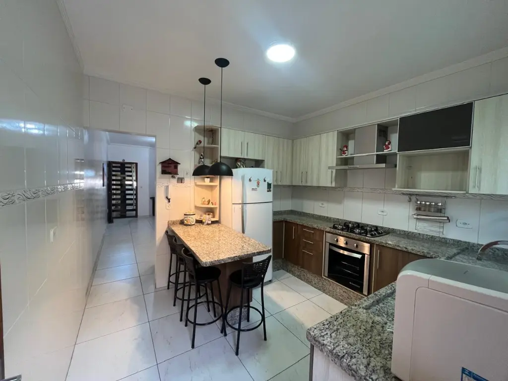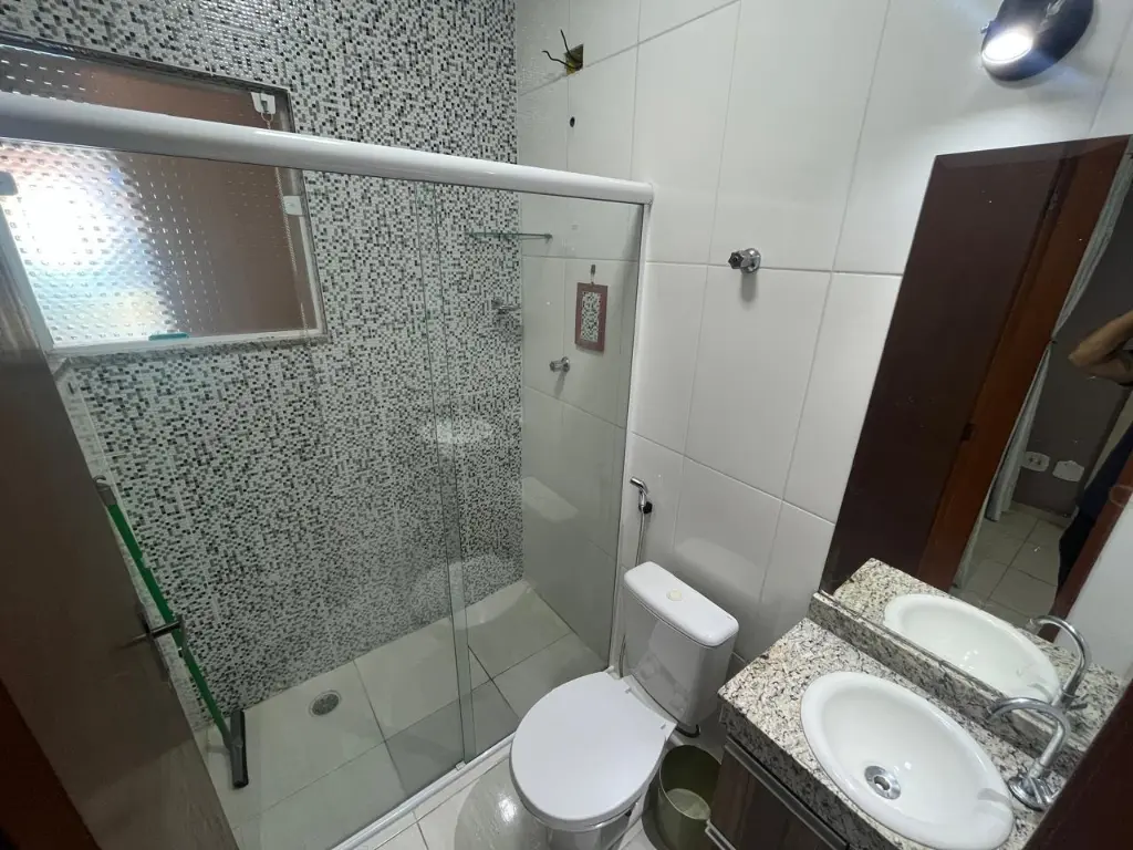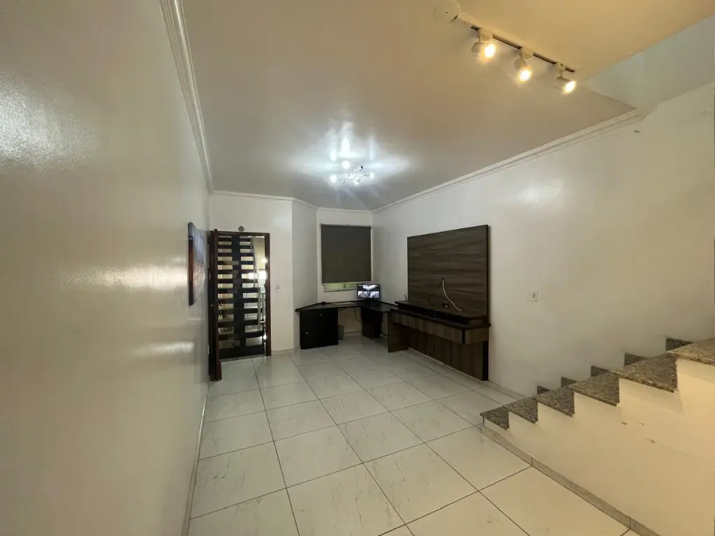 LINDO SOBRADO COM 03 PAVIMENTOS, SENDO 02 SUÍTES, AMBOS COM GUARDA ROUPA EMBUTIDO E AR CONDICIONADO, SALA AMPLA, COZINHA PLANEJADA, LAVANDERIA, 02 VAGAS DE GARAGEM COM PORTÃO AUTOMÁTICO, SISTEMA DE ALARME COM 09 CÂMERAS, CHURRASQUEIRA COMPLETA.