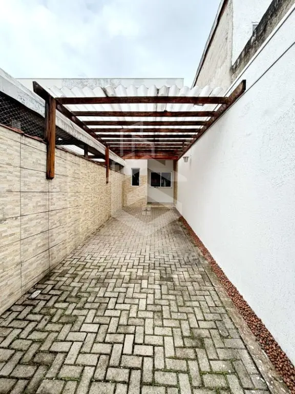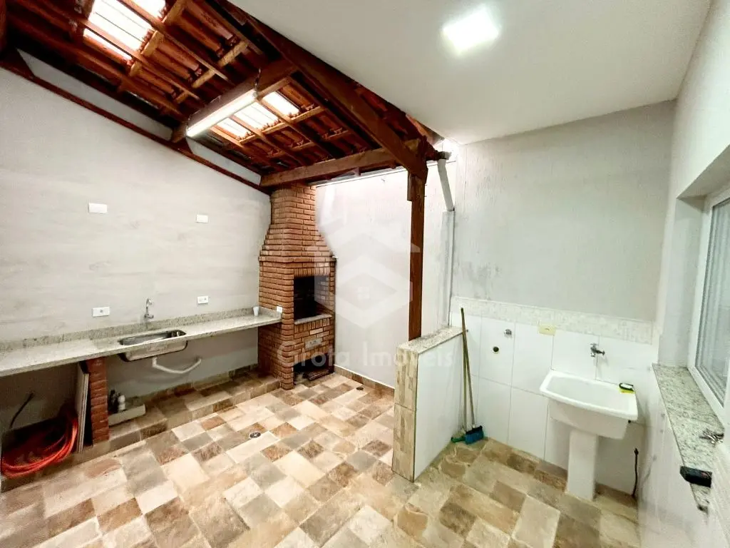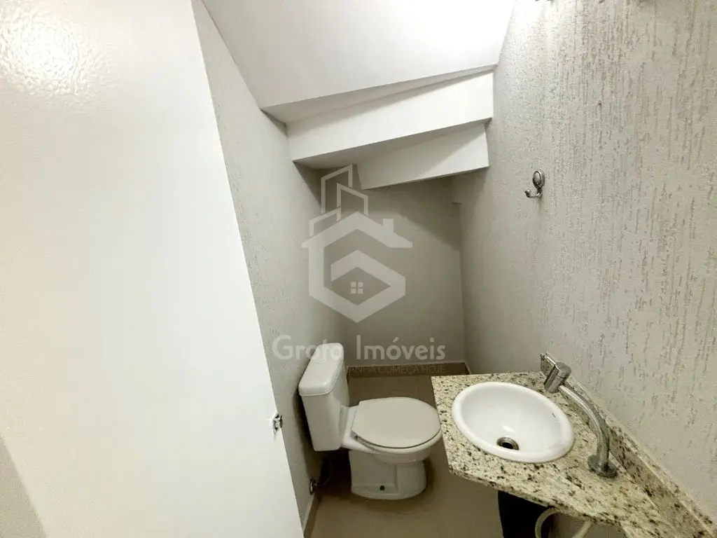 Sobrado individual com 84m² de área construída, sala, lavabo, cozinha, área de serviço, quintal, churrasqueira, 2 suítes.