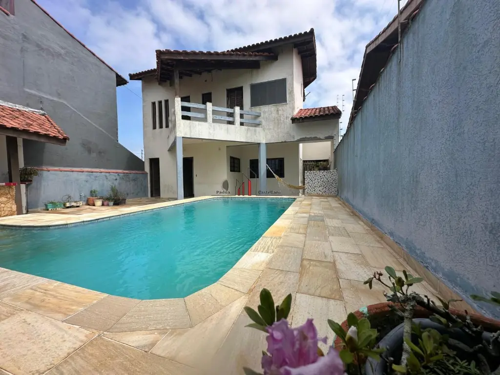 Casa estilo sobrado no Bairro Tupy em Itanhaém no litoral sul de São Paulo, lado praia á 110 metros do mar, em rua calçada. Imóvel com 250 m² de área total, sendo 182 m² de área construída.