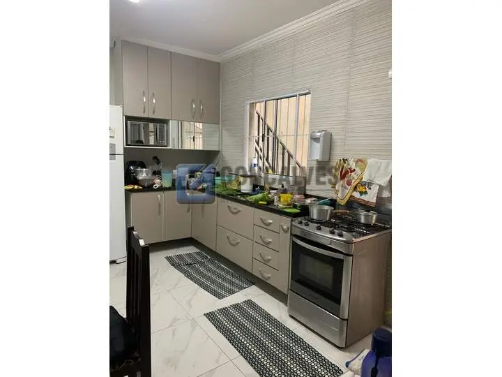 Sobrado residencial disponível para venda no bairro Vila Homero Thon, em Santo André. Área interna de 199 m² e área externa de 199 m², terreno de 125 m². São 3 quartos, 2 vagas de garagem, sem elevadores e sem unidades por andar especificadas.