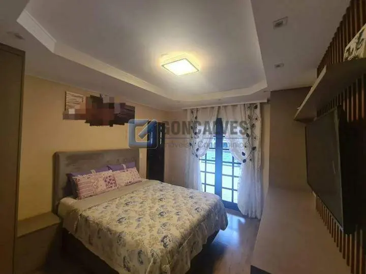 Sobrado à venda no Bairro Batistini em SBC Sendo 3 dormitórios, 1 suíte, sala 2 ambientes, 1 banheiro com box, gabinete, porcelanato, 2 vagas de garagem cobertas, quintal com churrasqueira, entrada lateral. Oportunidade!! Referência 154807 R$