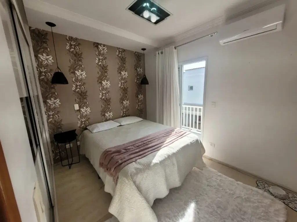 A planta é bem resolvida e favorece a convivência. A sala integrada à cozinha cria um ambiente mais leve, agradável e prático para a rotina da casa, enquanto os dormitórios no pavimento superior trazem a separação ideal entre área social e área íntima. A suíte garante mais conforto no dia a dia, e a sacada acrescenta charme e ventilação ao ambiente.