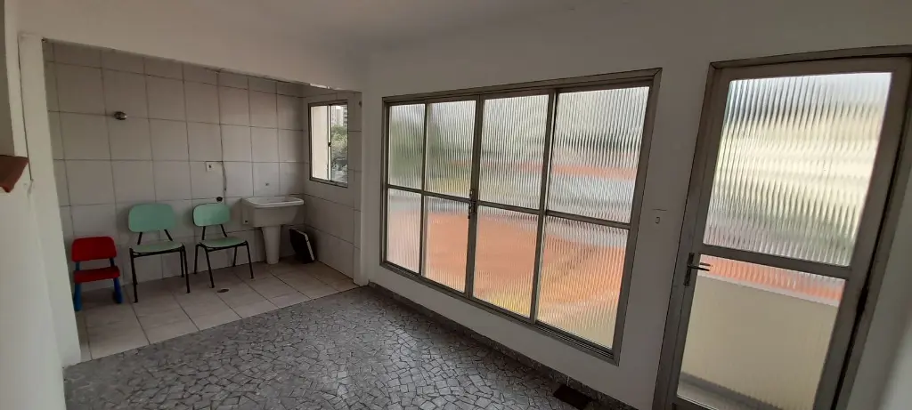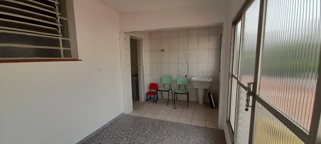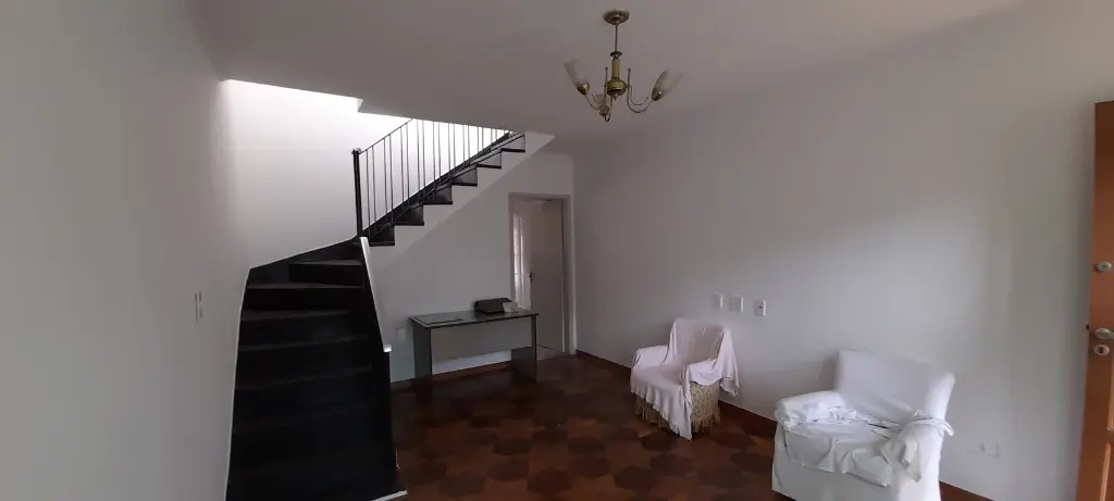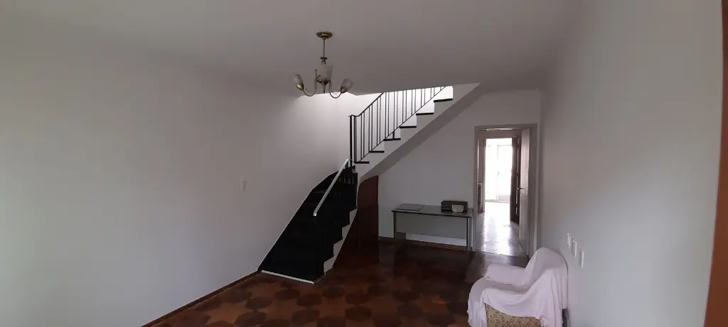 O sobrado no bairro Jabaquara tem 120m², com 2 quartos e 3 banheiros.