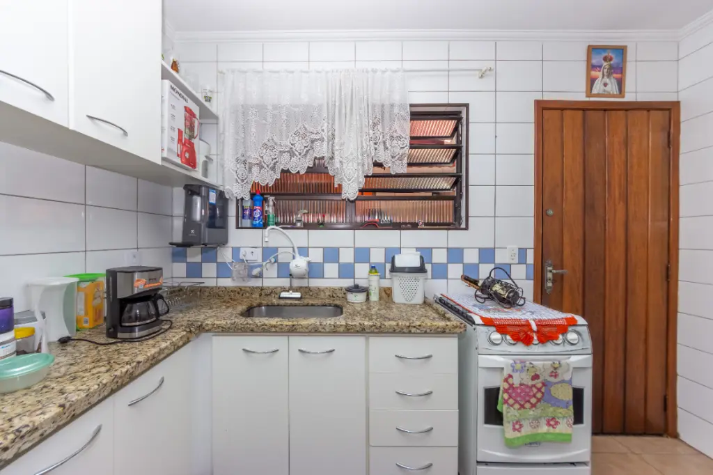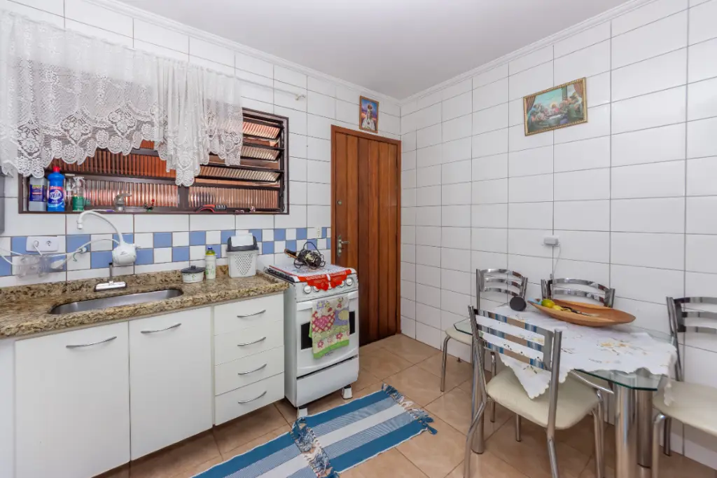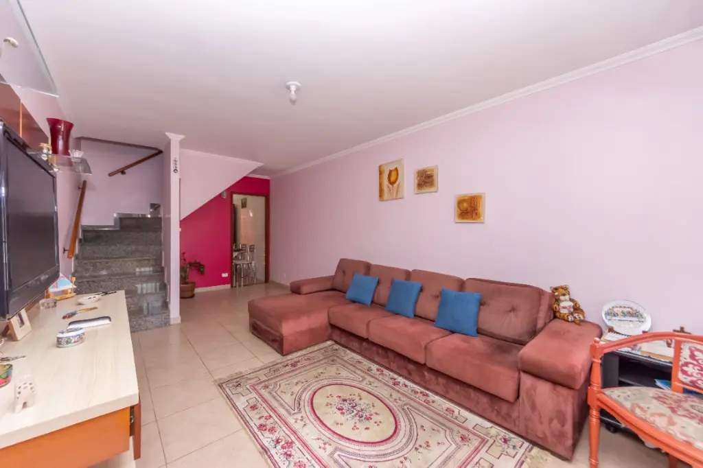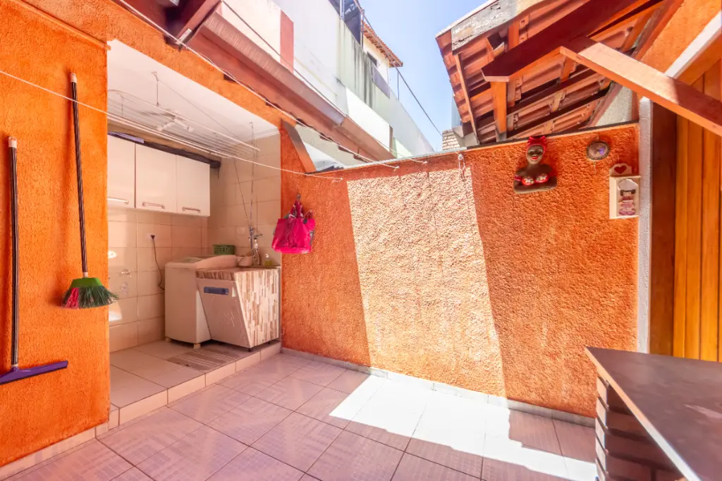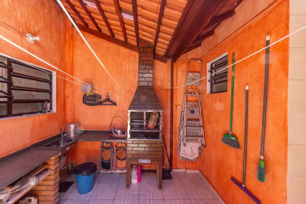 Encantador sobrado de 94 m², com 2 dormitórios, sala ampla para dois ambientes, lavabo, cozinha planejada e área gourmet com churrasqueira a carvão, ideal para momentos de lazer e convivência.