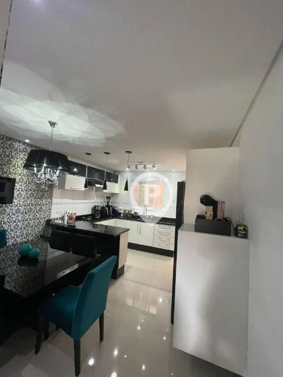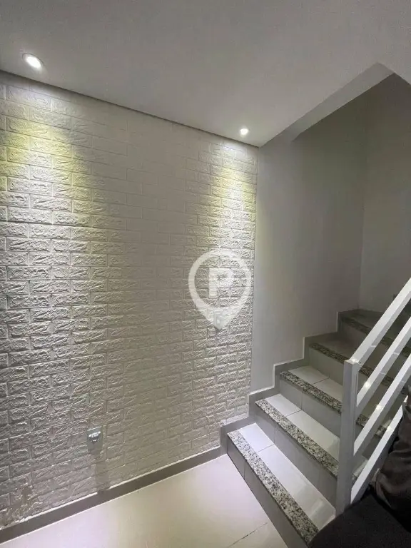 130 m² contruídos, 3 dormitórios, 1 suíte, sala 2 ambientes, cozinha planejada, área de serviço, parte superior com amplo quintal e churrasqueira, 2 vagas de garagem cobertas, 3 banheiros.