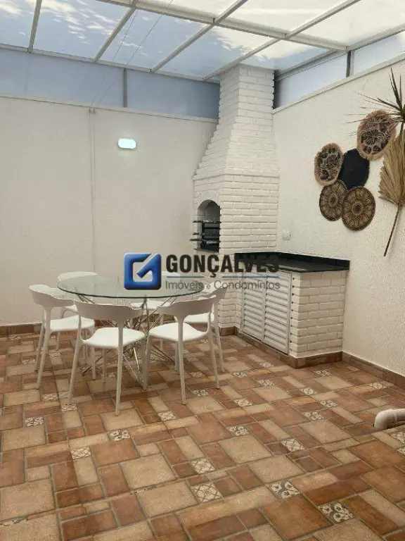 Sobrado residencial em Santo André (Vila Pires), com 138 m² de área interna, posição frontal, 3 quartos (1 suíte) e 3 banheiros. Espaço moderno com porcelanato, varanda gourmet, área de serviço, quintal e churrasqueira. Possui mobiliado, armários embutidos, aquecimento elétrico, água individual, interfone, portão eletrônico, DCE, lavabo e jardim. Já com 2 vagas de garagem. Aceita financiamento e permuta. Referência: 1. IPTU anual de R$ 1.080,00.