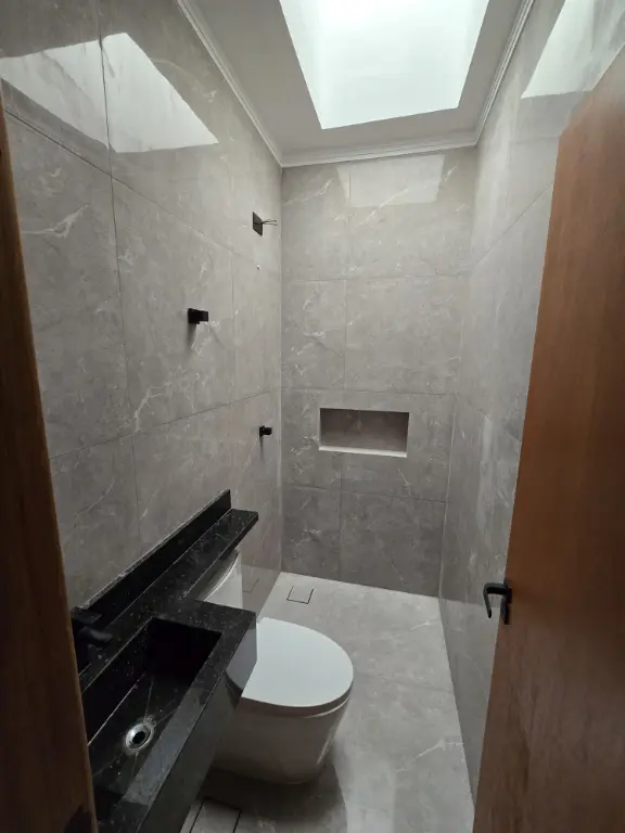 Sobrado recém construído, fino acabamento, possui Sala de jantar, Área de Serviço e Área gourmet.
