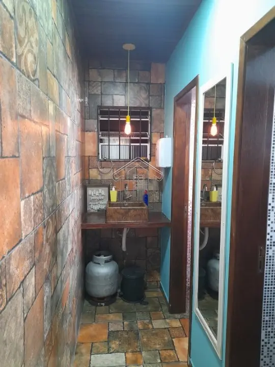 * área de lazer com churrasqueira e 2 lavabos