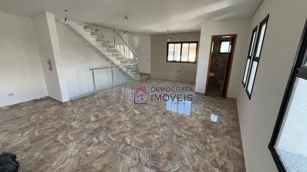 Sobrado novo com 128m² de área útil. Possui 2 dormitórios sendo 2 suítes, lavabo, sala, cozinha, quintal com lavanderia, churrasqueira e 3 vagas de garagem.