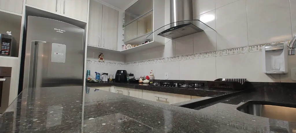 Composto por 03 dormitórios sendo 01 suíte com sacada, sala com 02 ambientes e cozinha com móveis planejados, fogão cooktop, coifa e isolamento até o teto.