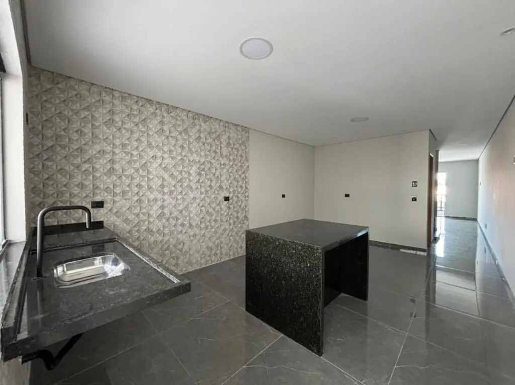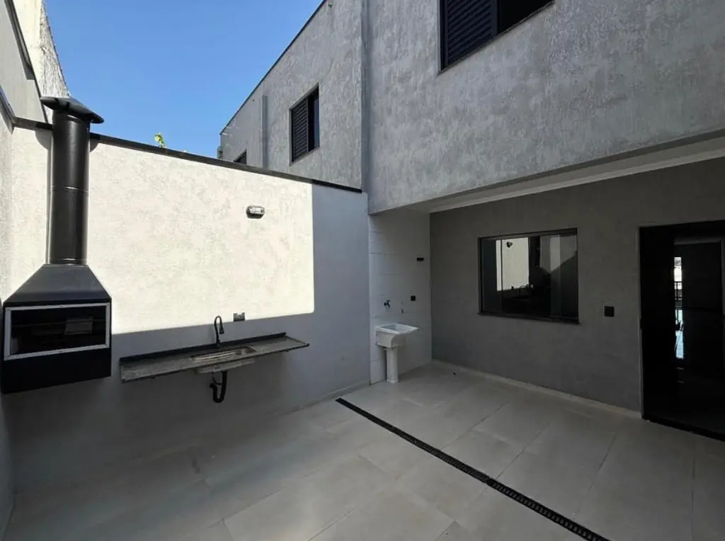 Elegante sobrado, primorosamente construído, oferece três dormitórios revestidos em porcelanato, iluminados por janelas de alumínio e acessados por portas de madeira. A suíte principal, dotada de pisos e azulejos de alta qualidade, proporciona conforto e requinte. Escadas em granito conduzem a uma ampla sala, também com pisos em porcelanato, complementada por um lavabo. A cozinha espaçosa, com pisos e azulejos, apresenta pias e bancadas em granito. A área de serviço, igualmente revestida, precede um agradável quintal. Um espaço gourmet, equipado com churrasqueira e pia em granito, convida ao lazer. Dispõe de duas vagas de garagem, uma coberta e outra descoberta, e portão automatizado, garantindo segurança e comodidade.