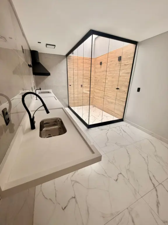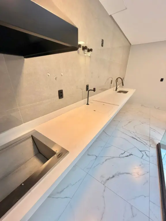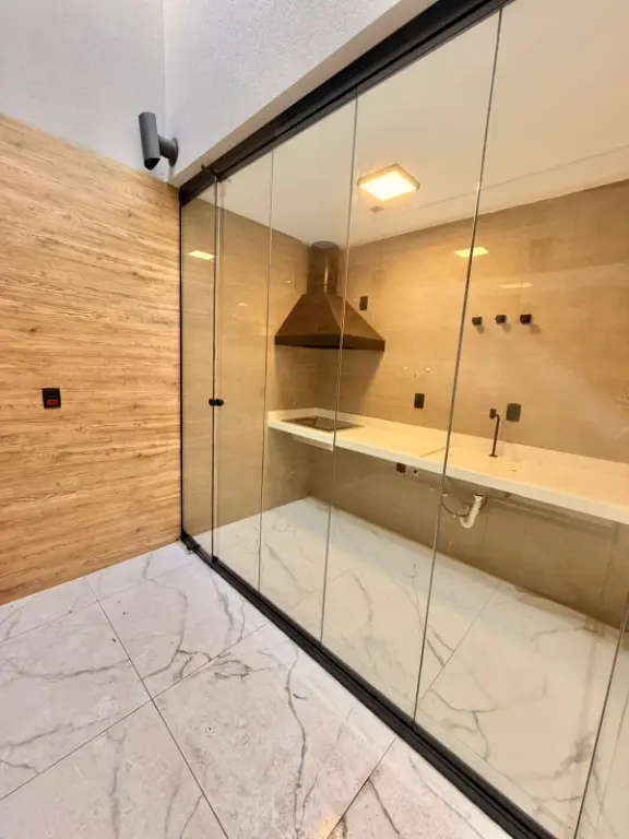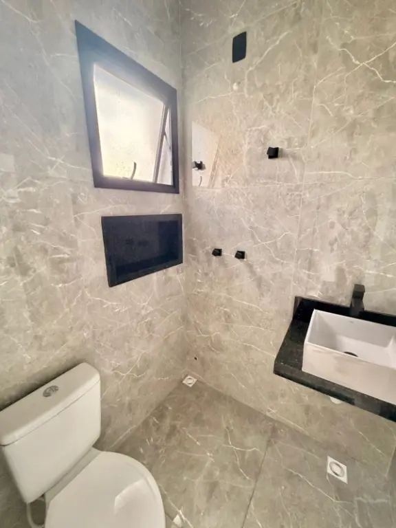 São 3 suítes sendo uma suíte com varanda, sala para dois ambientes, lavabo, cozinha com área gourmet (churrasqueira a carvão). Acabamentos de qualidade, com porcelanatos grandes, forros de gesso, iluminação com led, torneiras. Já possui instalação para ar condicionado, e água quente e frias nas torneiras. Documentação em ordem para financiamento. Agende uma visita.
