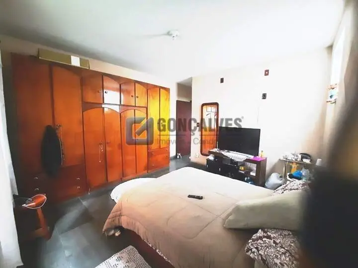 Venda de sobrado residencial localizado em Santo André (Bairro Vila Junqueira). Possui 4 quartos (1 suíte), 1 sala, 1 banheiro, área de serviço, armários na cozinha e em quarto, acabamento em ardósia, e 4 vagas de garagem. Área interna de 180 m², área externa 180 m², terreno de 250 m².