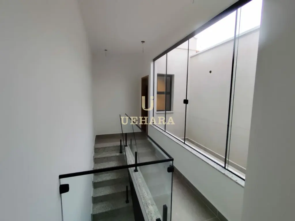 Sobrado novo de 116m², com 03 suítes com sacada, 04 banheiros, cozinha ampla, sala para dois ambientes, área de serviço, quintal, espaço gourmet, 02 vagas de garagem, portão automático.