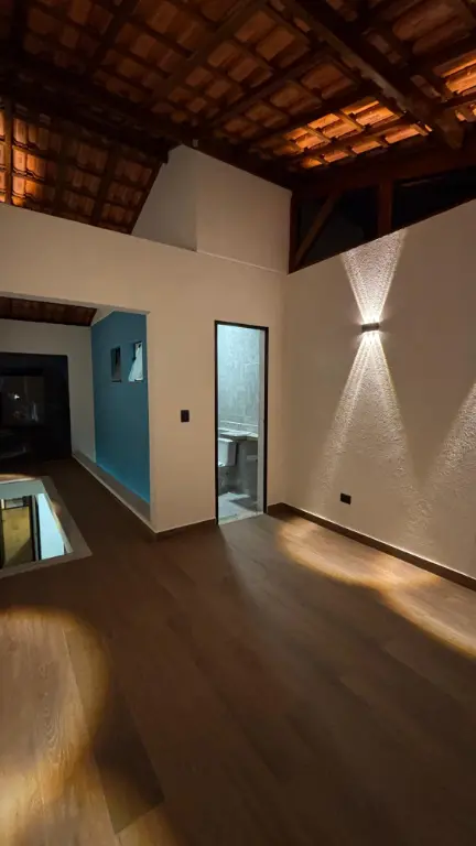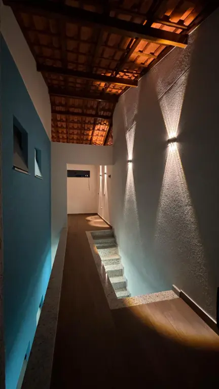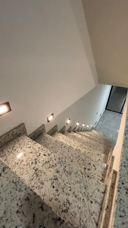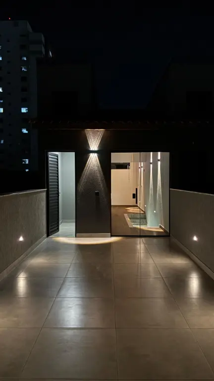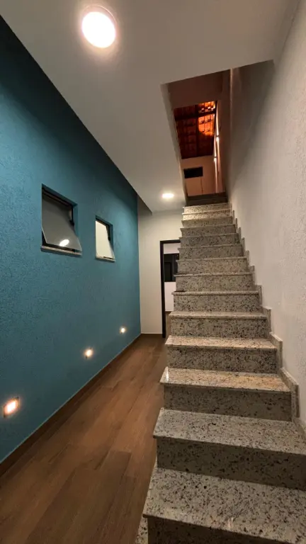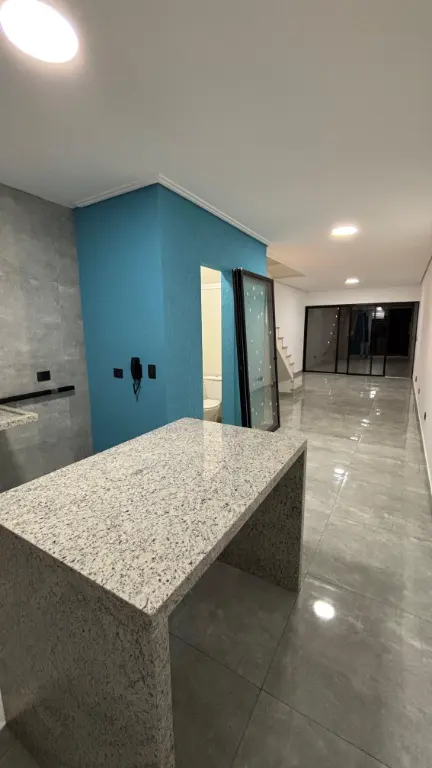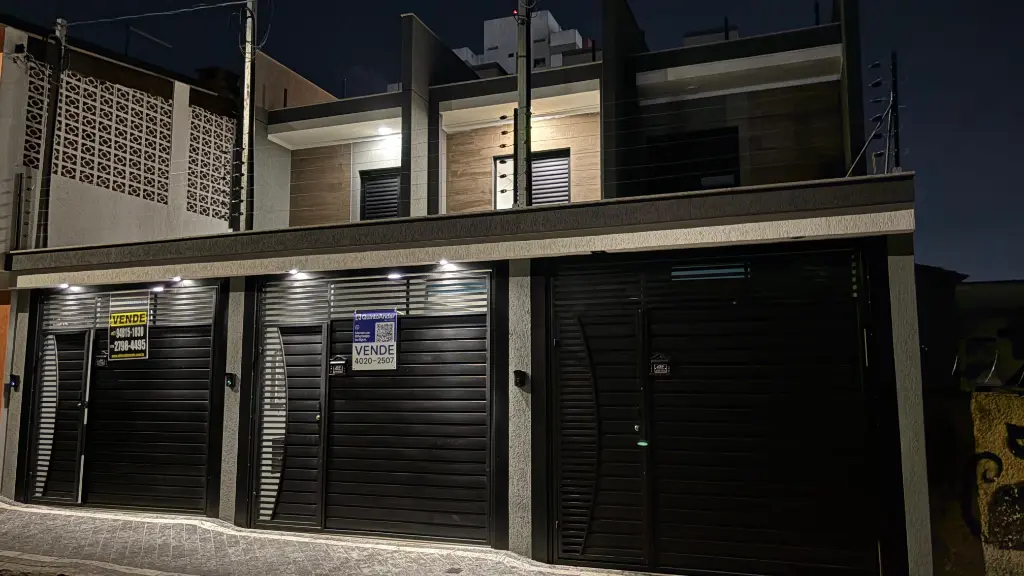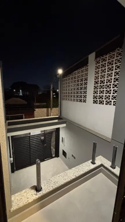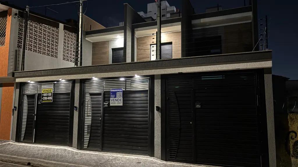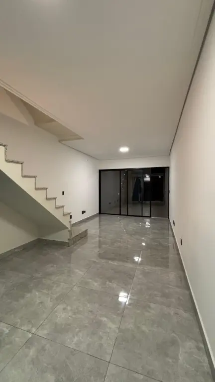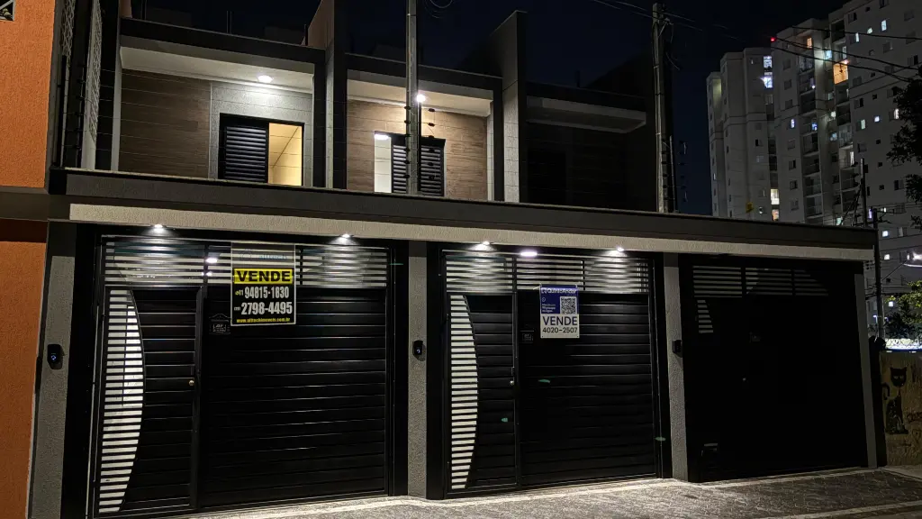 Excelente sobrado com três suítes, acabamento em porcelanato, janelas em alumínio, portas em madeira e escadas em granito. Sala e cozinha em conceito aberto com piso em porcelanato. Suíte master com sacada. Quintal com churrasqueira, área de serviço e piso em porcelanato. Garagem automatizada para dois carros, uma vaga coberta. Possibilidade de escritório ou quarta suíte com ampla sacada superior.